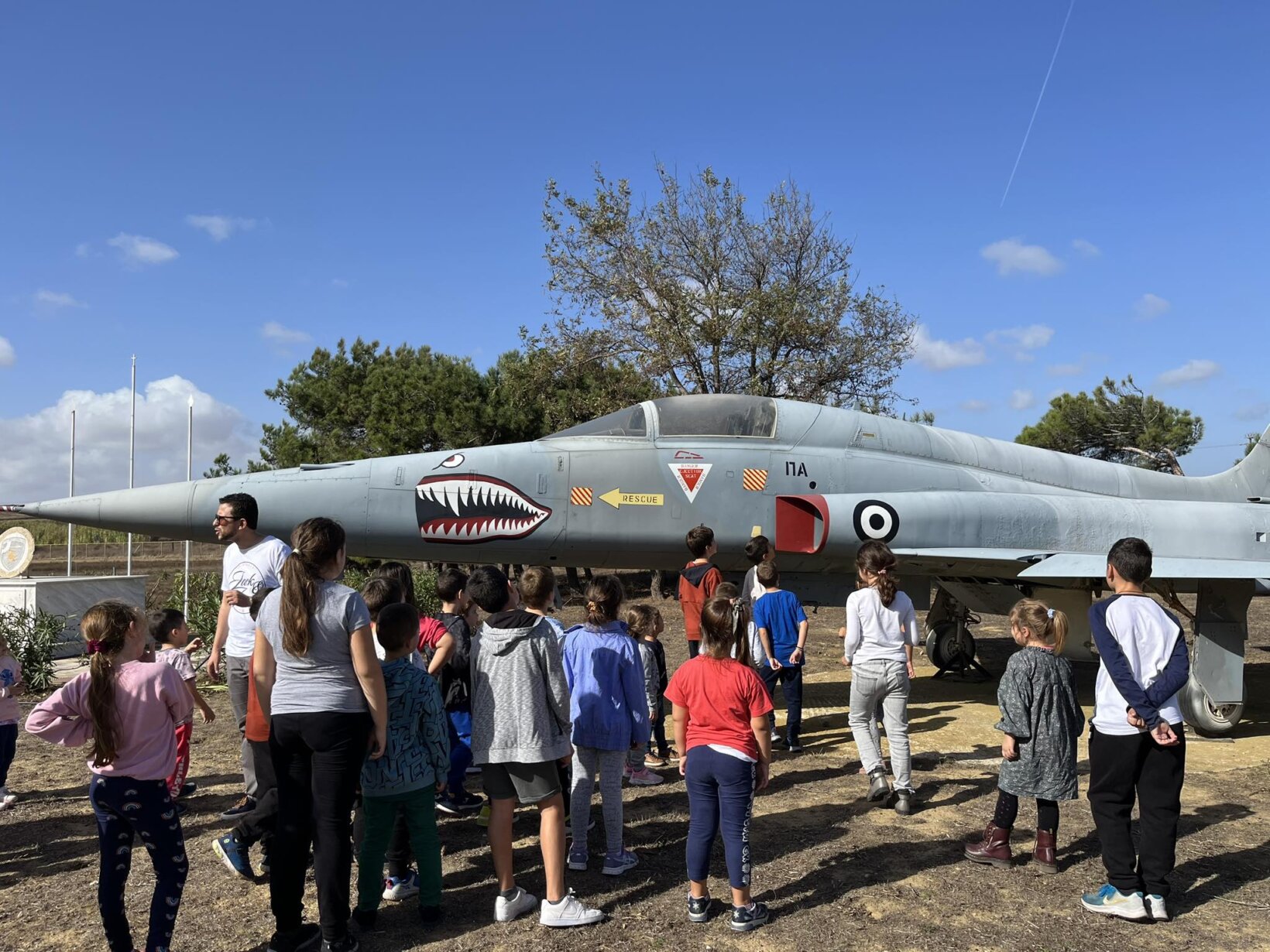 Οι κάτοικοι της Λήμνου καθημερινά βλέπουν τα μαχητικά αεροπλάνα να διασχίζουν τον ουρανό και πιστεύουμε πως και οι μαθητές και οι μαθήτριές μας πρέπει να γνωρίζουν την προσφορά της πολεμικής αεροπορίας. Για το λόγο αυτό και με αφορμή την εορτή της πολεμικής μας αεροπορίας επισκεφτήκαμε την 130 Σμηναρχία Μάχης Λήμνου. Μας έγινε ξενάγηση στους χώρους και τα παιδία είχαν την ευκαιρία να δουν από κοντά αεροπλάνα, άρματα μάχης και άρματα διάσωσης. Ευχαριστούμε θερμά το προσωπικό για την ενημέρωση και την φιλοξενία.