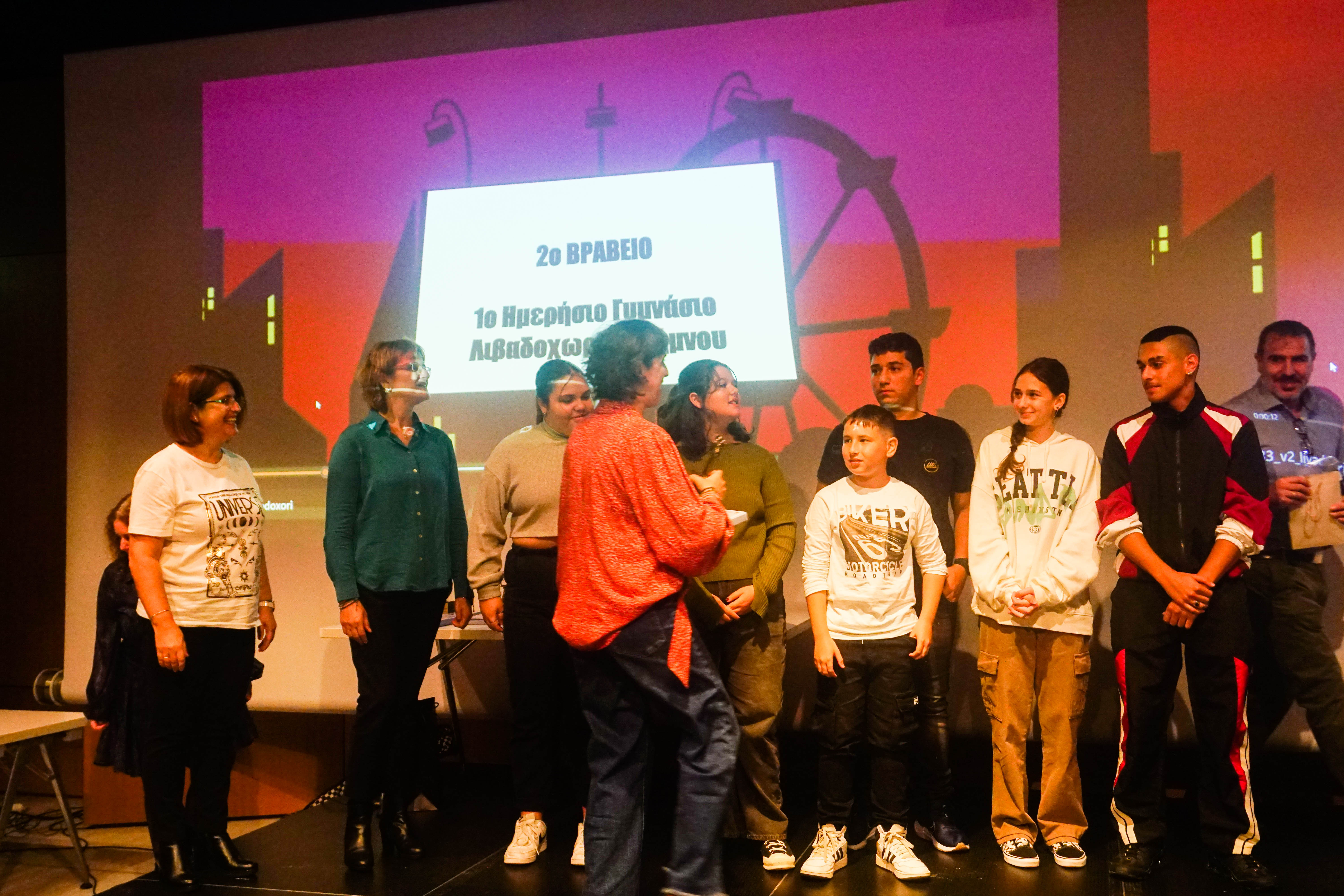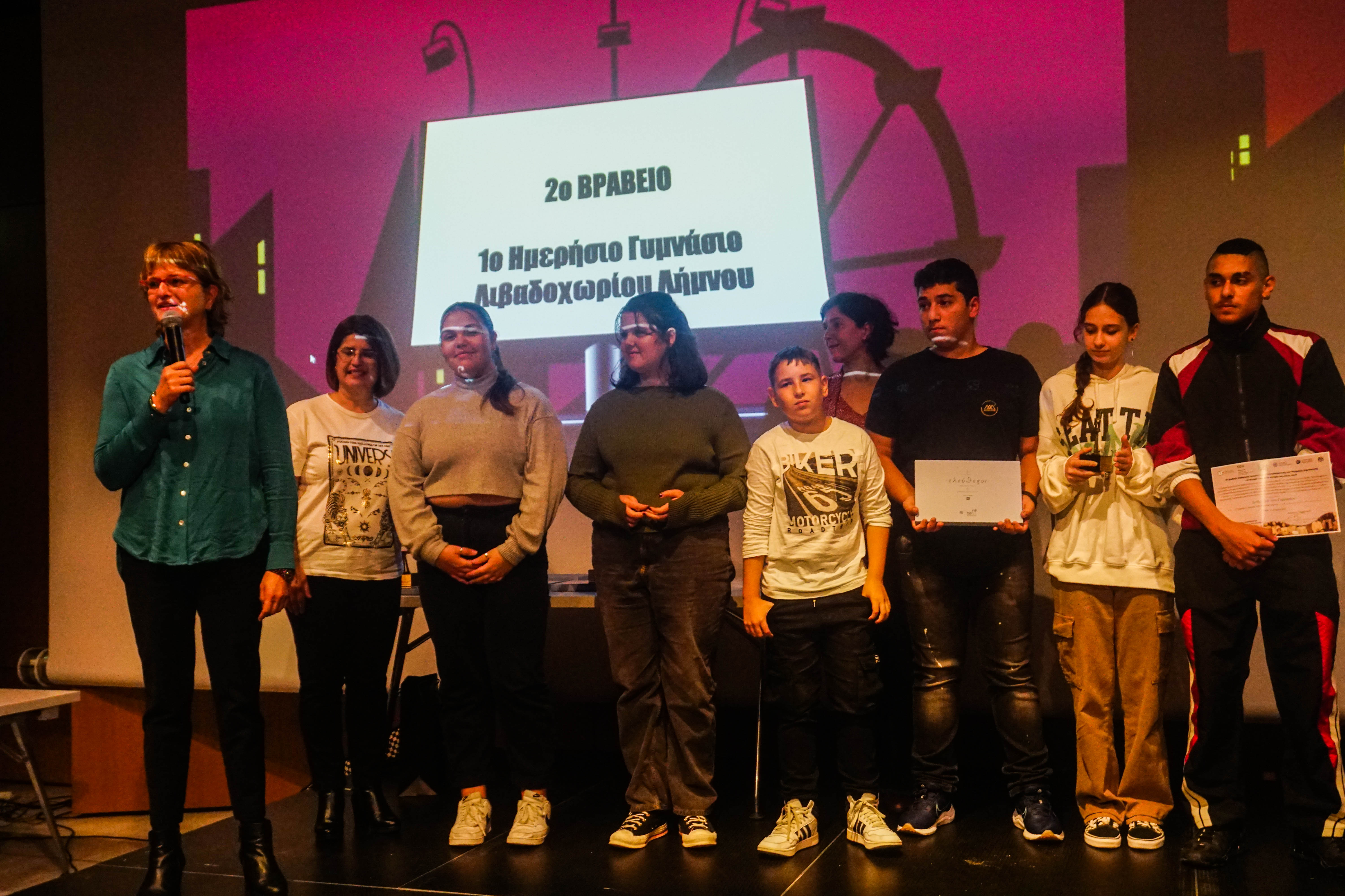 Το βραβείο παρέλαβαν εκπρόσωποι μαθητές-δημιουργοί της ταινίας, μέλη της κινηματογραφικής ομάδας του σχολείου: Χάρις Μεργιά, Γιοβάνα Μήλε, Αδαμαντία Κονταρή, Αντώνης Μιχάκης από τη Γ΄ τάξη, Χαράλαμπος Αλεξανδρίδης, Γιάννης Ελευθεράκης από τη Β΄ τάξη, και οι υπεύθυνοι εκπαιδευτικοί, Χαριτίνη Φωτοπούλου, Διευθύντρια του σχολείου, Ουρανία Χαλικιώτου, φιλόλογος.