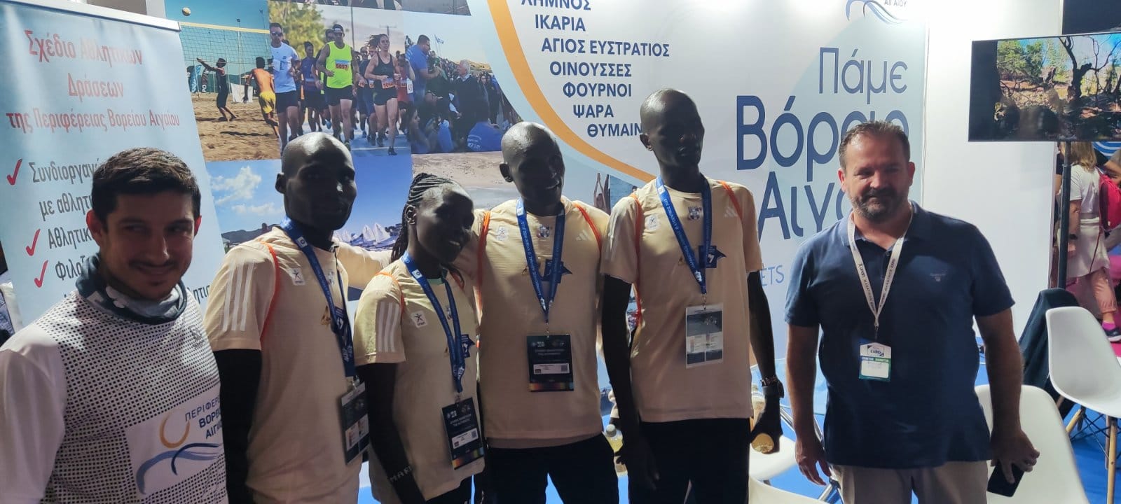 Το παρών στη φετινή έκθεση έδωσε ο Αντιπεριφερειάρχης Αθλητισμού κ. Δημήτρης Κουρσουμπάς και είχε εποικοδομητικές επαφές με αθλητικούς φορείς. Tο περίπτερο της Π.Β.Α. επισκέφθηκαν φίλοι του Αθλητισμού, αθλητές, πρωταθλητές αλλά και ο νικητής του 40ου Αυθεντικού Μαραθωνίου ο Έντουιν Κίπροπ Κίπτοο, ενώ στο περιθώριο της έκθεσης δόθηκαν ειδικά αγωνιστικά μπλουζάκια με το λογότυπο της Περιφέρειας για τους συμμετέχοντες δρομείς Μαραθωνίου των νησιών μας.