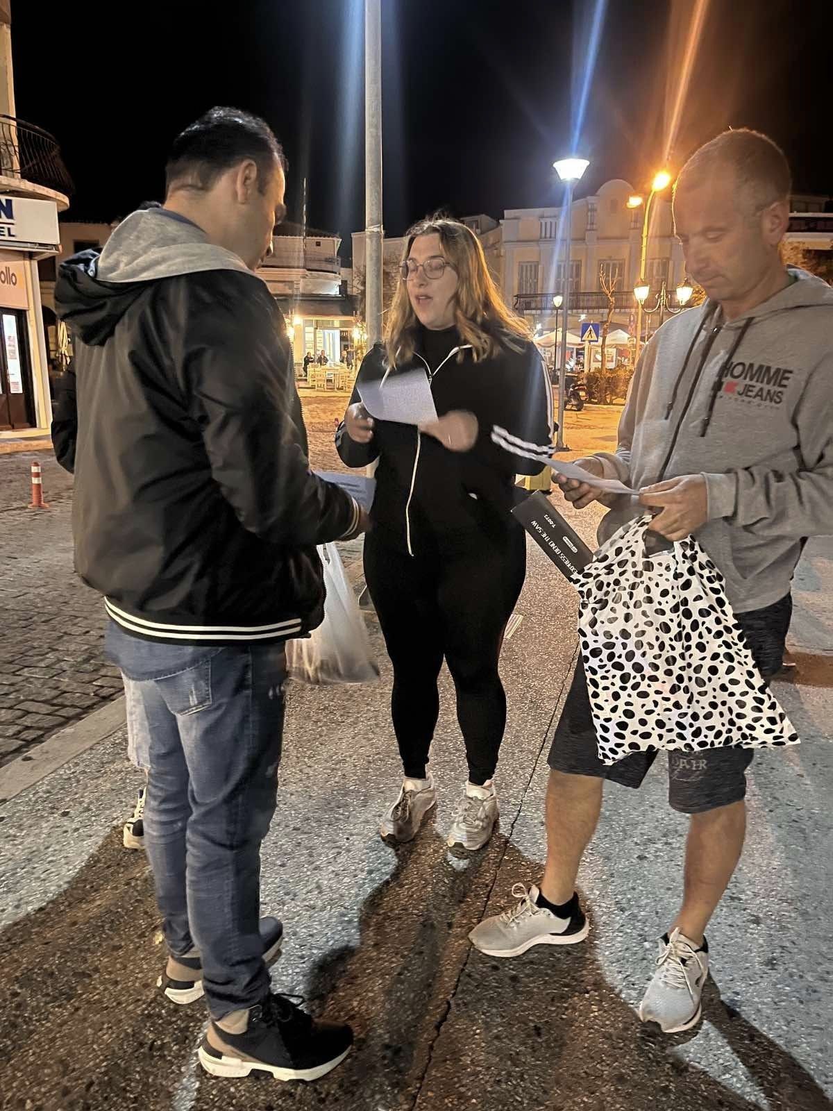 Οι σπουδαστές, υπό την καθοδήγηση της εκπαιδεύτριάς τους κ. Μαρία Ξυγιντζή, βρέθηκαν σε κεντρικά σημεία της πόλης, όπως η Αγορά και το Λιμάνι, αποτυπώνοντας την παρουσία τους με εντυπωσιακό τρόπο.