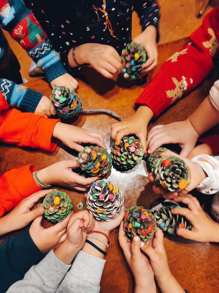 Στο τέλος, τα παιδιά με τη βοήθεια της συντονίστριας έφτιαξαν χριστουγεννιάτικα δεντράκια παίρνοντας υλικά από την ίδια τη φύση, γιατί το σημαντικό είναι να μπορέσουν να εμπνέονται με ότι υπάρχει γύρω τους.