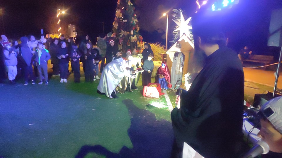 Παιδιά της Ε’ και της ΣΤ’ Δημοτικού απέδωσαν το δρώμενο με θέμα τη γέννηση του θεανθρώπου με τη βοήθεια του ιερέα της ενορίας πατέρα Θεολόγου και τα παιδιά των χορευτικών τμημάτων του συλλόγου υπο την καθοδήγηση του χοροδιδάσκαλου Νάσου Χαλκά και τη βοήθεια του Θανάση Αμπελώμου έψαλαν τα κάλαντα.