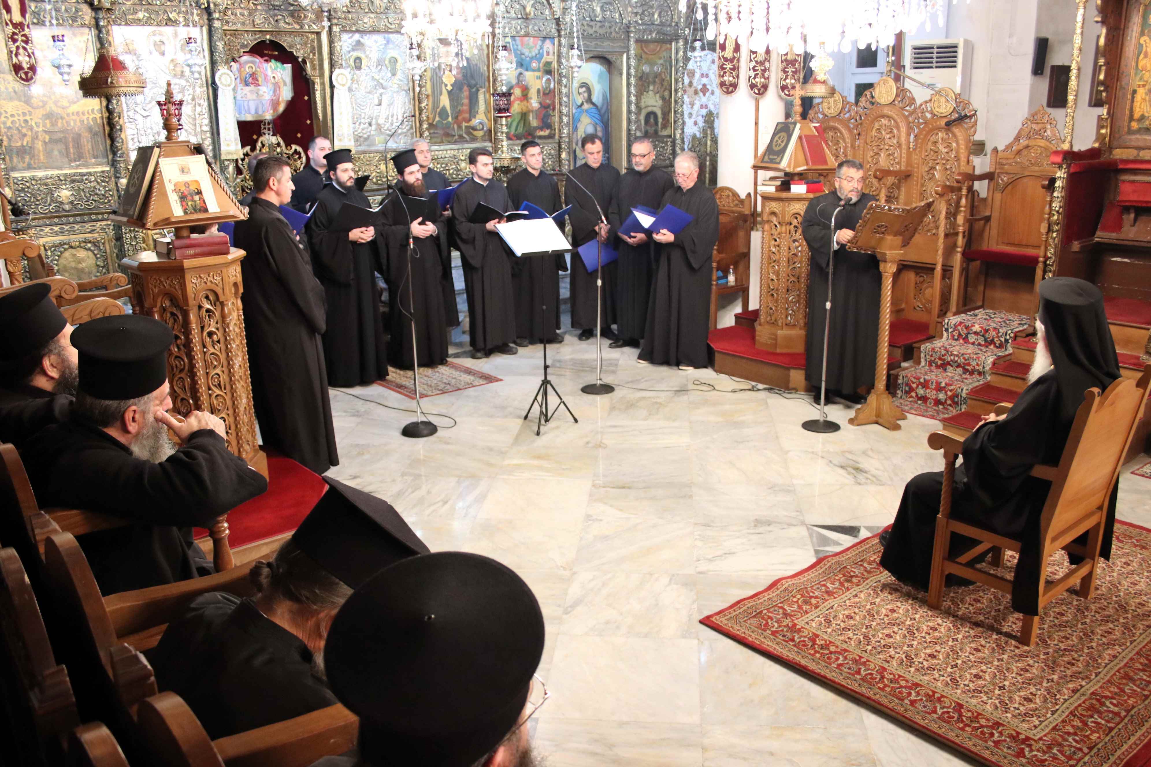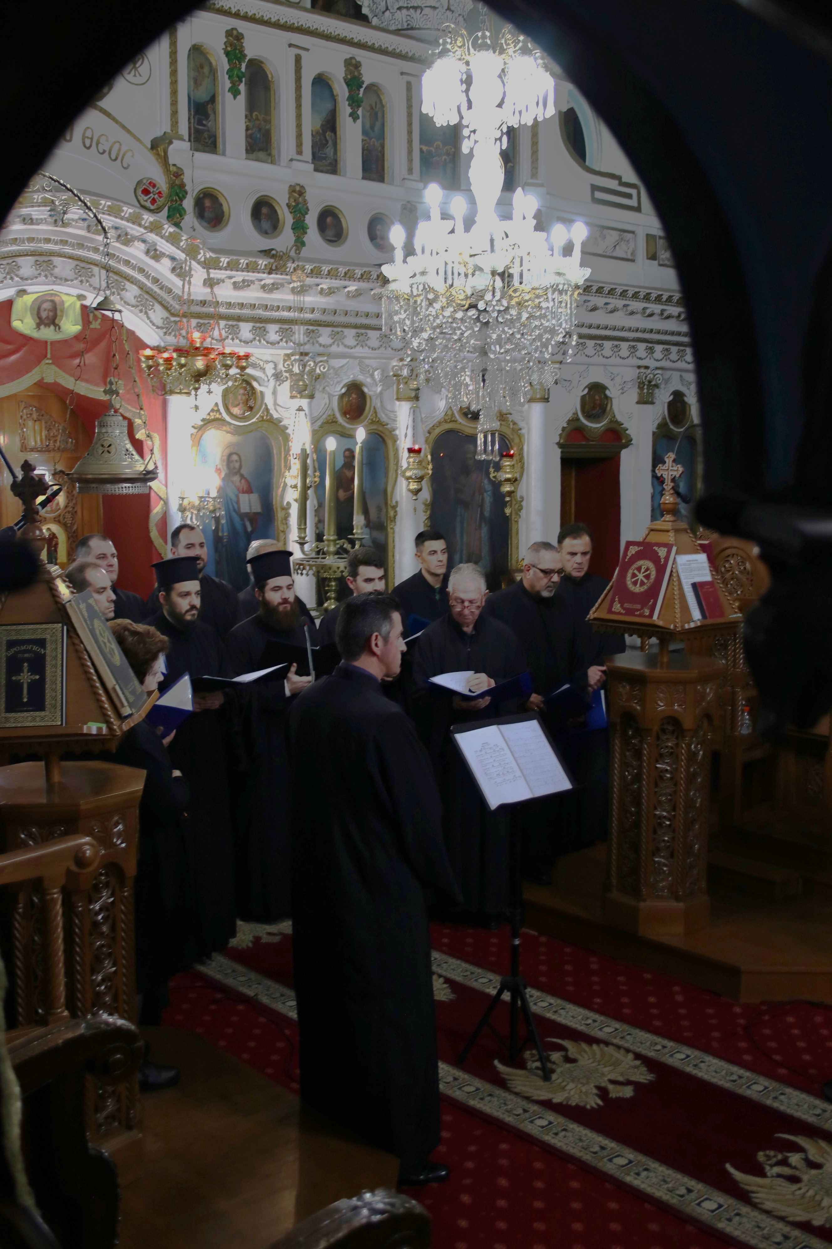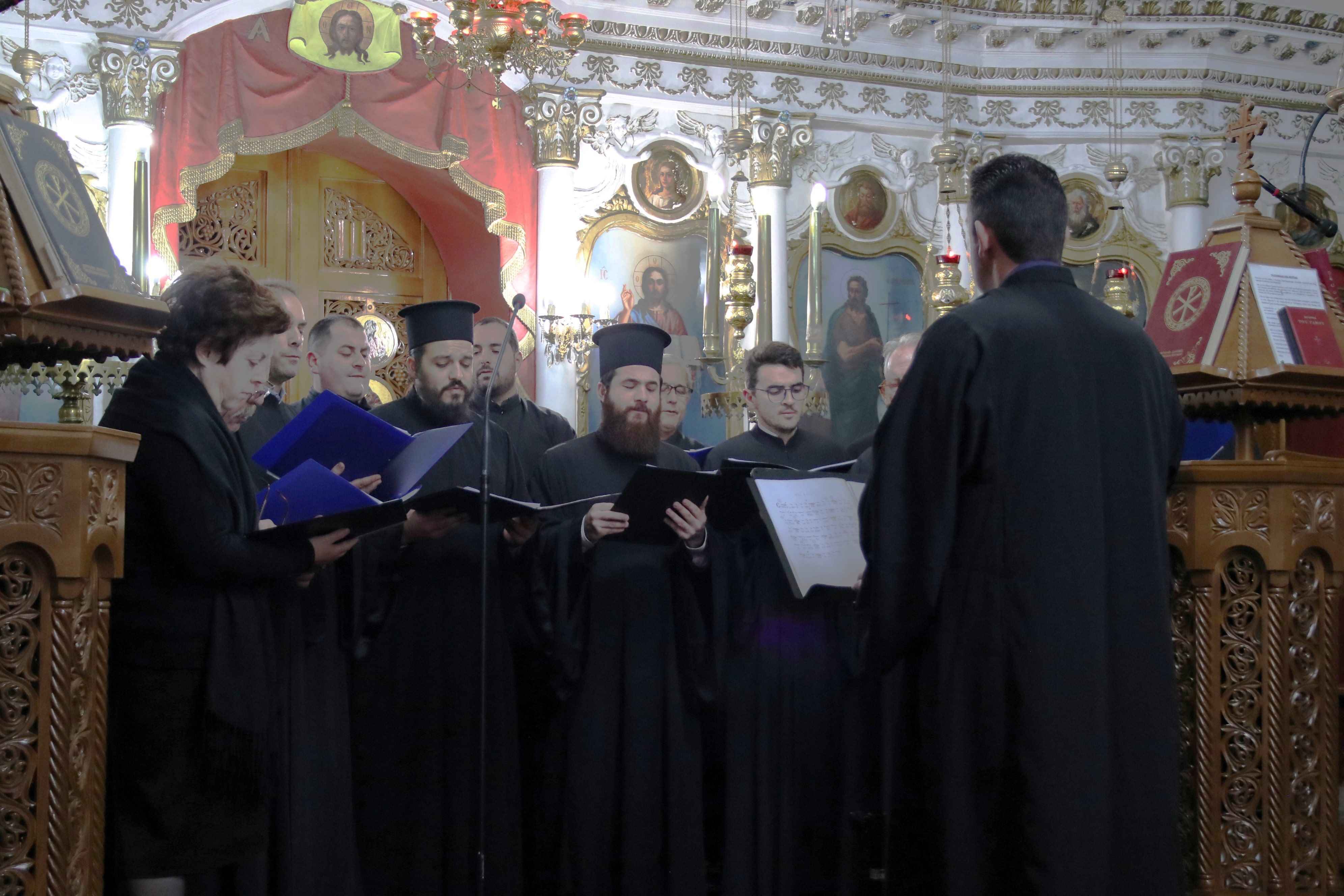 Τους ύμνους που είναι άρρηκτα συνδεδεμένοι με την ιερότητα των ημερών, απέδωσαν εξαιρετικά οι χορωδοί υπό την καθοδήγηση του χοράρχη κ. Βασίλη Ταρσή, συγκινώντας πάντα χάρις στην εμπνευσμένη μουσική γλώσσα σπουδαίων μελωδών.