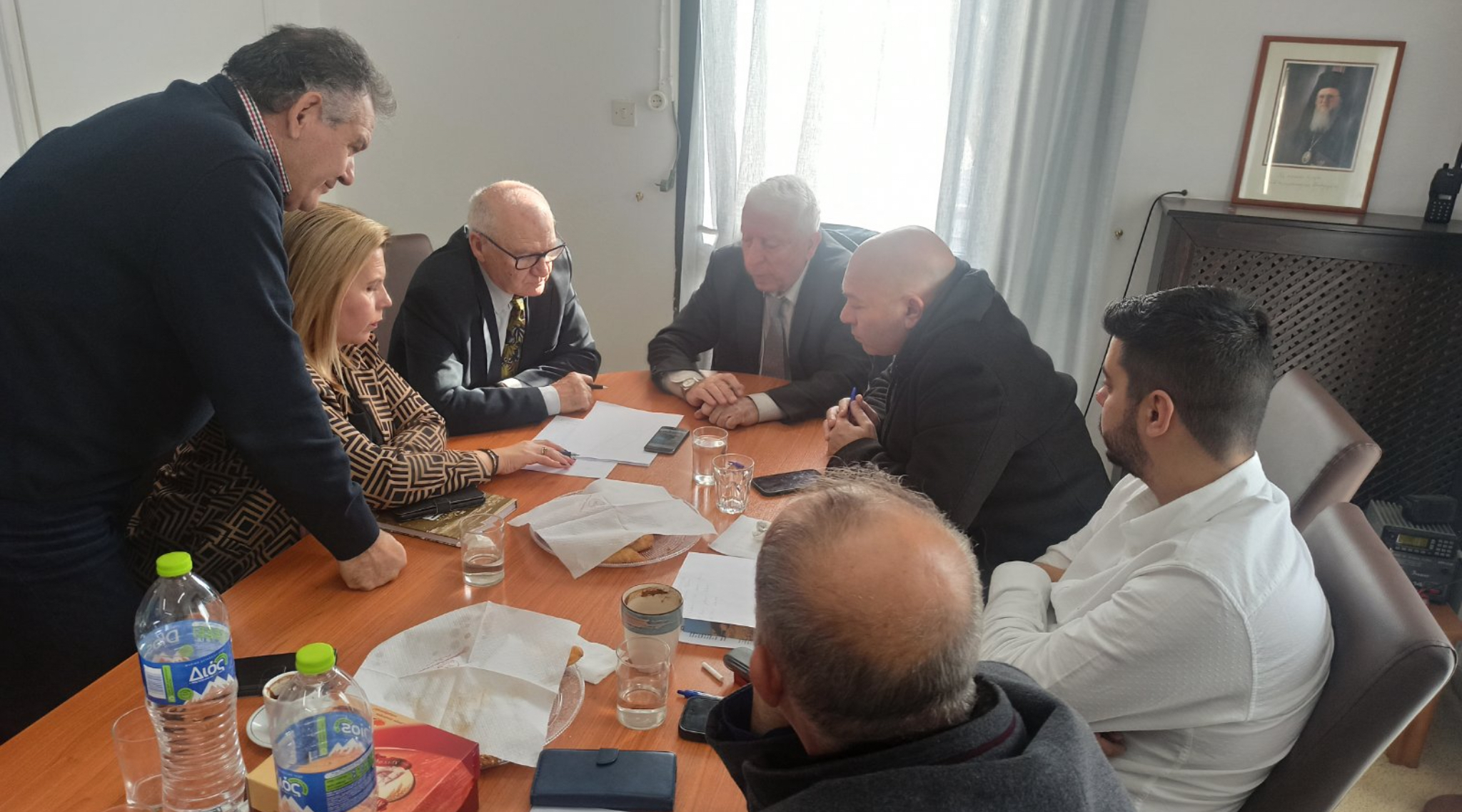 Η συνάντηση πραγματοποιήθηκε παρουσία του Εκτελεστικού Γραμματέα της Περιφέρειας Βορείου Αιγαίου κ. Άρη Ελευθερίου, του Επάρχου Λήμνου κ. Απόστολου Κουτσογιάννη, του Αντιπεριφερειάρχη Τεχνικών Έργων κ. Χρυσόστομου Χατζηκυριαζή και του Αντιπεριφερειάρχη, αρμόδιου για αγροτικά θέματα Λήμνου κ. Άγγελου Βλάττα Λαμπρινού.
