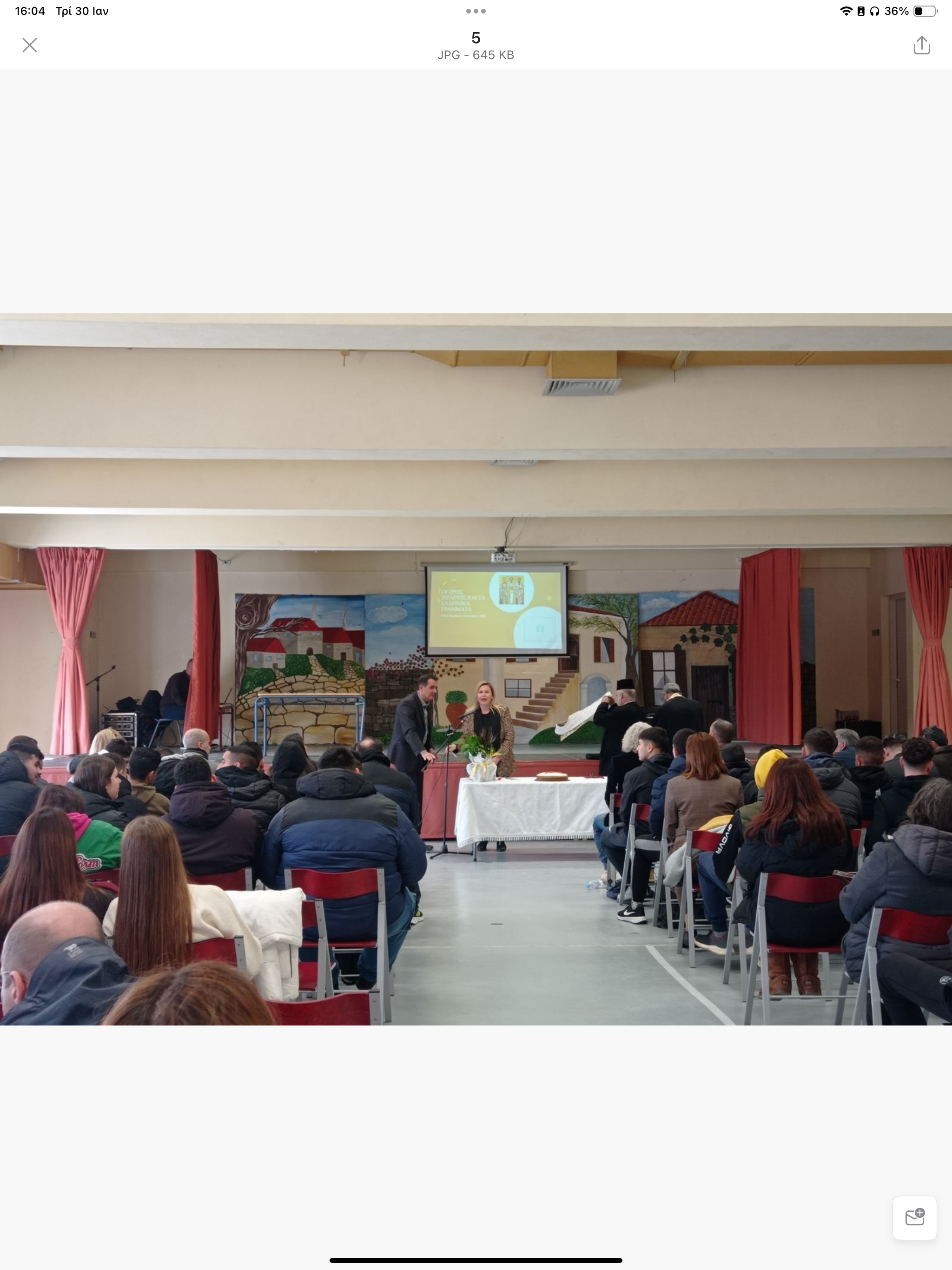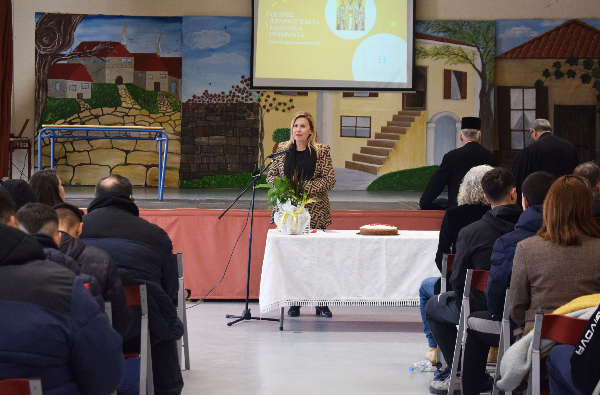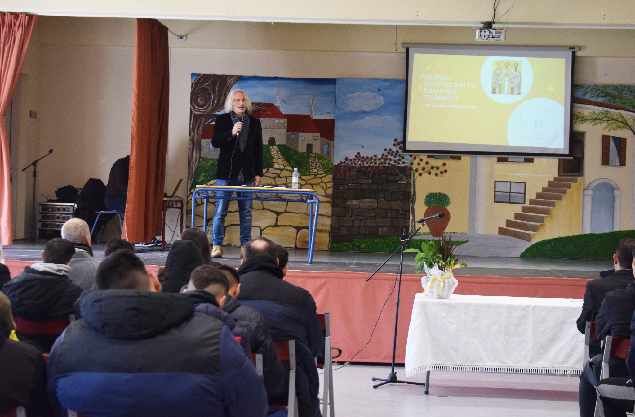 Αφετέρου με αφορμή την εορτή των Τριών Ιεραρχών στις 30 Ιανουαρίου παρακολούθησε ομιλία από την κυρία Μαρία Αυγολούπη Θεολόγο και εκπαιδευτικό του σχολείου και τον κύριο Χρήστο Πάτση Φιλόλογο – Θεολόγο, οι οποίοι μίλησαν στα παιδιά για το σπουδαίο έργο των Τριών Ιεραρχών και τη συμβολή τους στην εκπαίδευση.