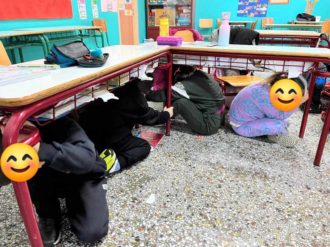 Επιπλέον, τα παιδιά, συμμετείχαν σε επίδειξη ασκήσεων σεισμού, στην οποία έμαθαν πώς να προφυλάσσονται σωστά σε περίπτωση σεισμικής δόνησης.