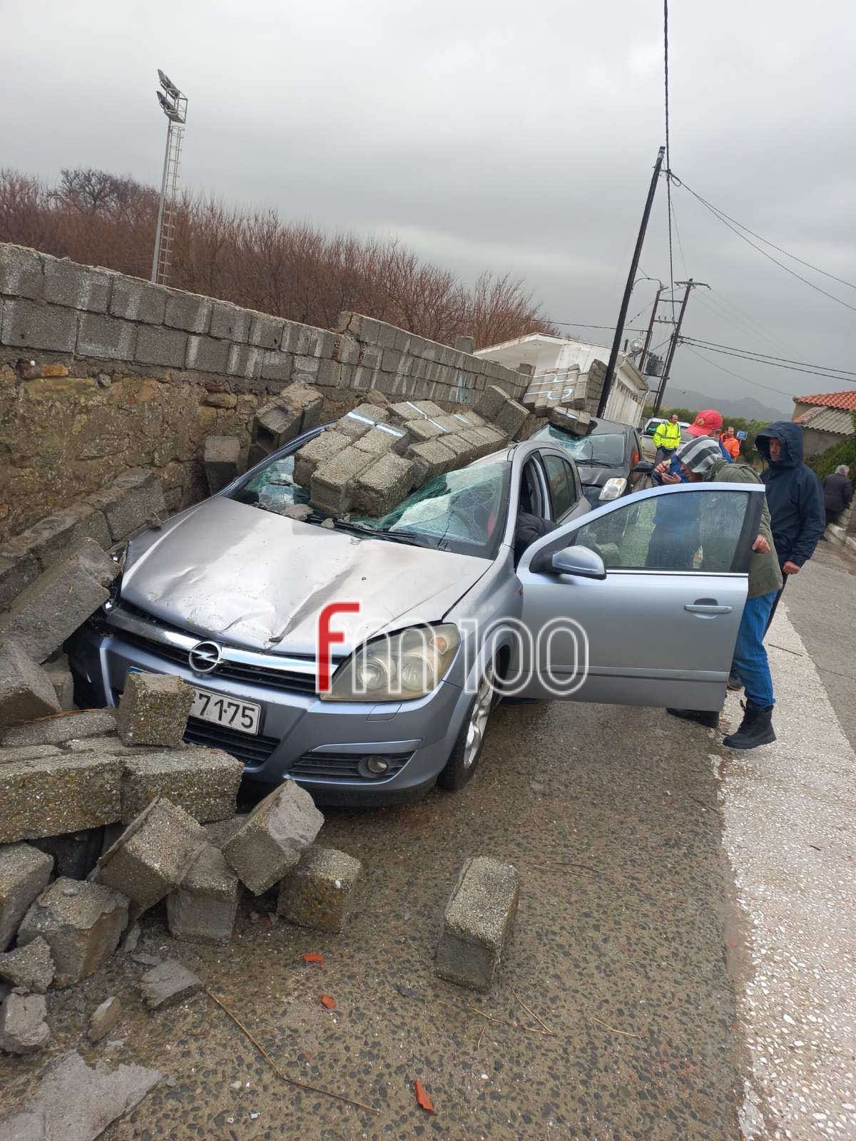 Επίσης, δύο οχήματα καταπλακώθηκαν από πτώση τοιχίο του γηπέδου Ατσικής, ενώ η πυροσβεστική δέχτηκε κλήση και για απάντληση υδάτων από υπόγειο σπιτιού στην περιοχή Παναγία του Τσας.