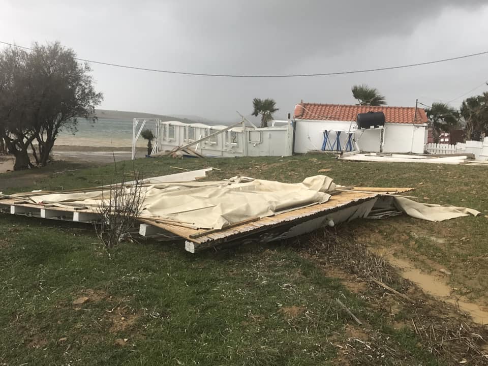Όπως θα δείτε στις φωτογραφίες που ανέβασε ο Κυριαζής Παλαιολόγος, λαβωμένο βρέθηκε νωρίτερα και το beach bar “Skala”, όπως και άλλα παραθαλάσσια μπαρ στην περιοχή του Εβγάτη.