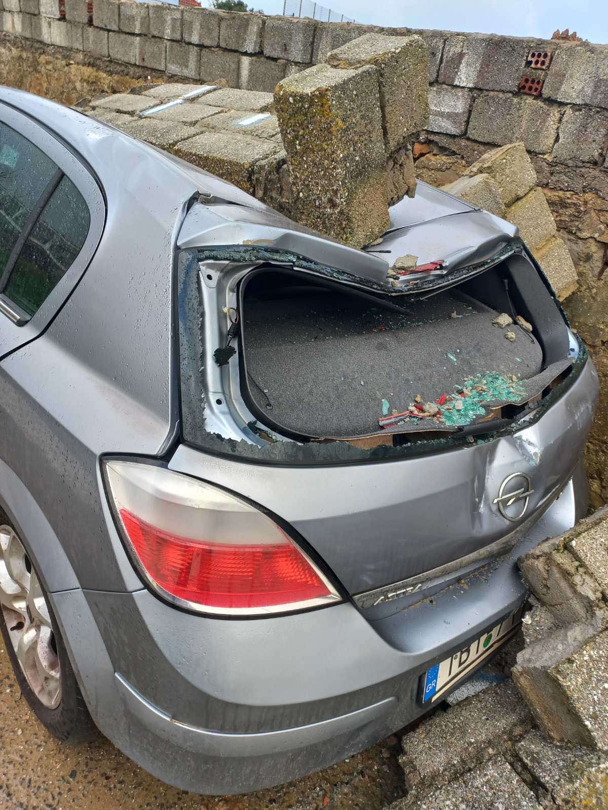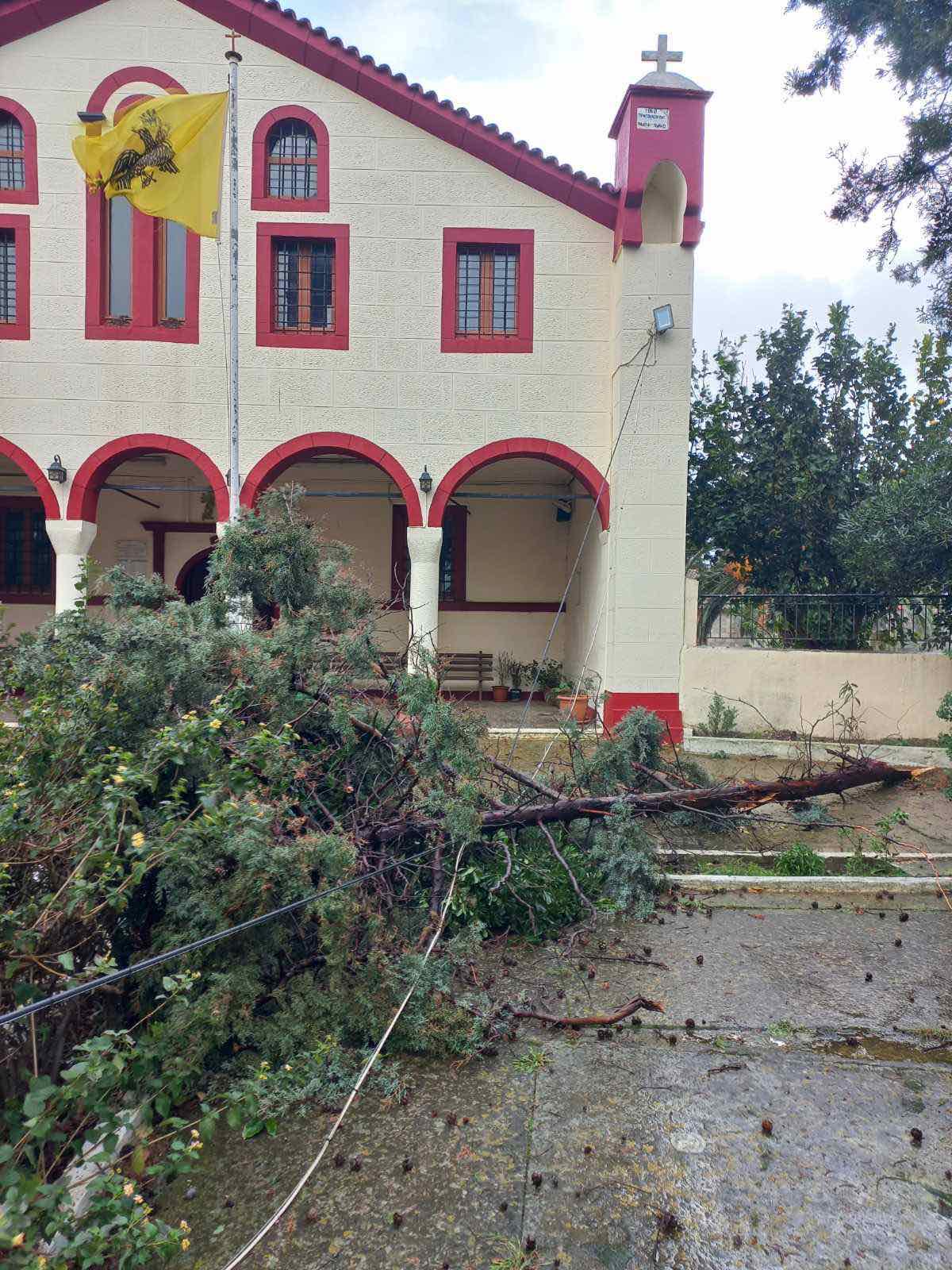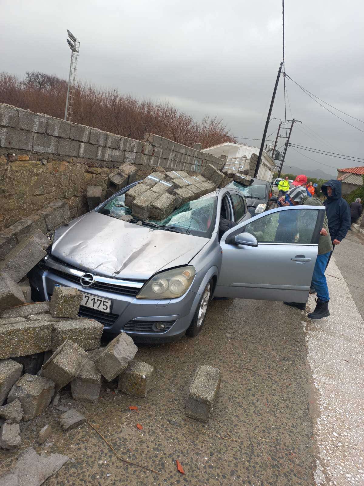 Επίσης, το πρώτο φως της ημέρας, αποκάλυψε και την πτώση τμήματος του τοιχίου του γηπέδου της Ατσικής, το οποίο καταπλάκωσε δυο ΙΧ αυτοκίνητα.