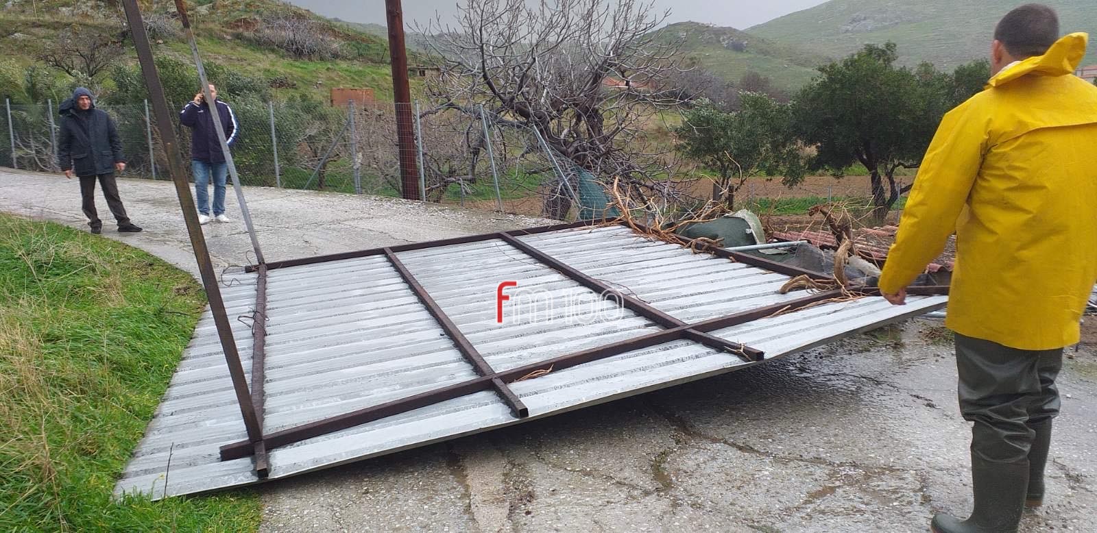 Οι μέχρι τώρα αναφορές κάνουν λόγο και για πολλές μάντρες, τις οποίες τις πήρε στην κυριολεξία ο δυνατός αέρας, ενώ εκτεταμένα προβλήματα υπάρχουν στο αγροτικό οδικό δίκτυο του νησιού.