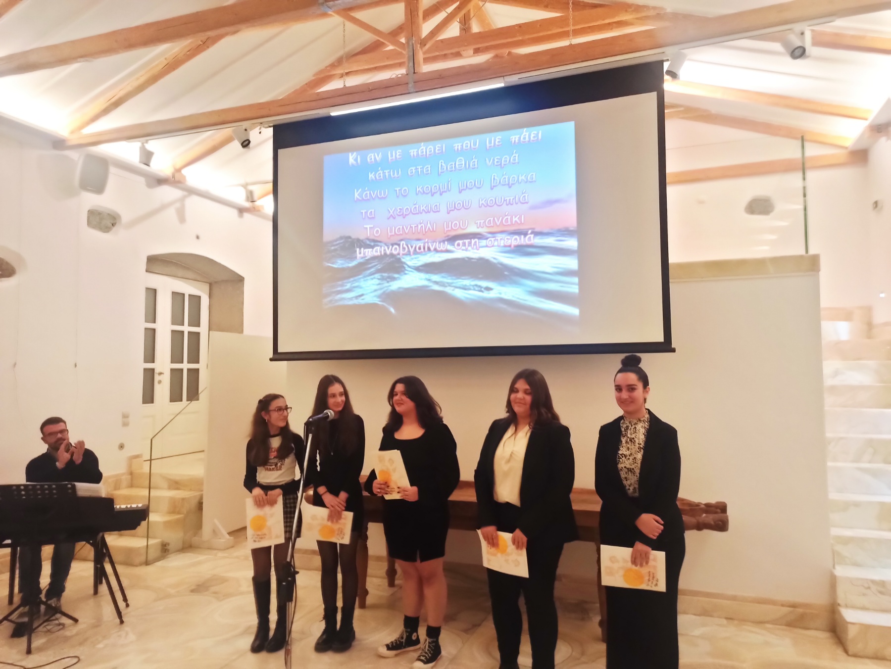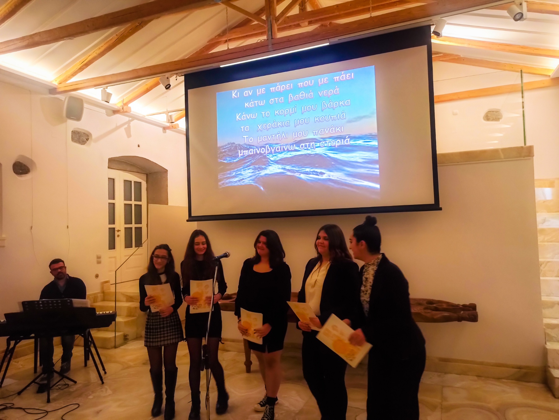 «Ευχαριστούμε και συγχαίρουμε τις μαθήτριες, τους γονείς τους και την υπεύθυνη φιλόλογο του σχολείου μας, κ. Μάλαμα Πορφύρη η οποία τα τελευταία οχτώ χρόνια έχει εμφυσήσει στις μαθήτριές της την ιδιαίτερη αγάπη τους για τη λογοτεχνία μέσα από τις δράσεις και τα προγράμματα που οργανώνει.