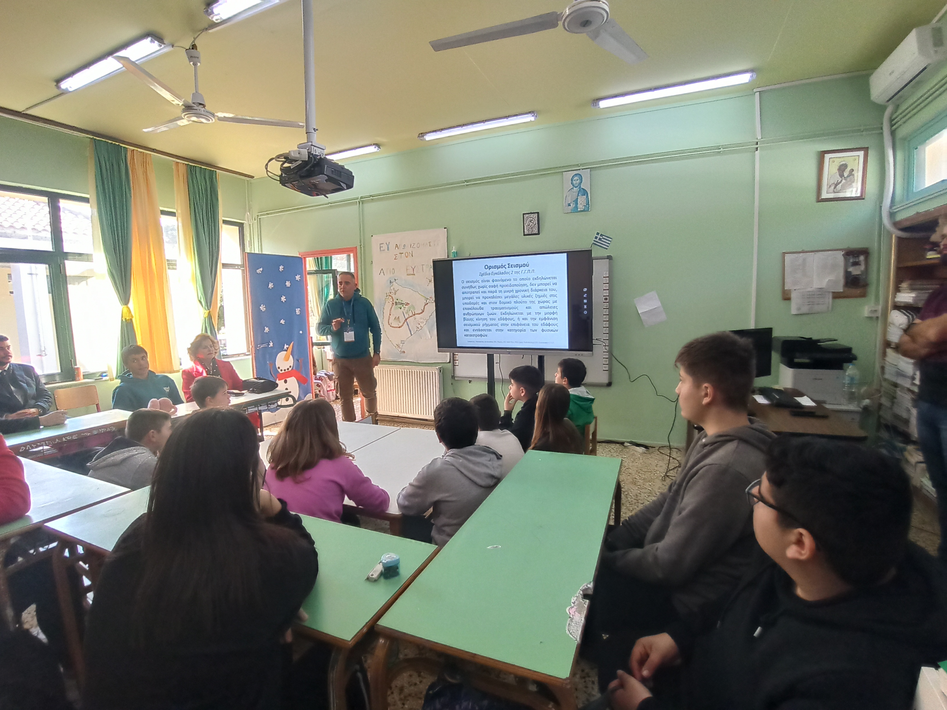 Τέλος ο Έπαρχος ήταν παρών και στην τελετή παράδοση ενός προβολέα (projector) που προσέφερε εκ μέρους του Φιλολογικού συλλόγου «Παρνασσός» o κ. Κώστας Βολάκης για τις εκπαιδευτικές ανάγκες του σχολείου .