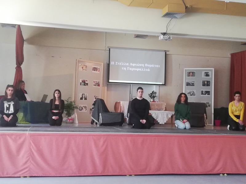 «Βία κατά των γυναικών. Αναπαράσταση ιστοριών». Τις προσωπικές ιστορίες κακοποιημένων θυμάτων και νεκρών γυναικών ερμήνευσαν οι μαθητές και οι μαθήτριες Αφιώνη Στέλλα, Κρασσά Μαρία, Λυμπέρη Μαρία, Καβαλέρου Φωτεινή, Χαβιά Ασπασία, Σουσαλή Βιβή, Βαρδαξής Θεόφιλος. Συμμετείχε η Καβαλέρη Σοφία.