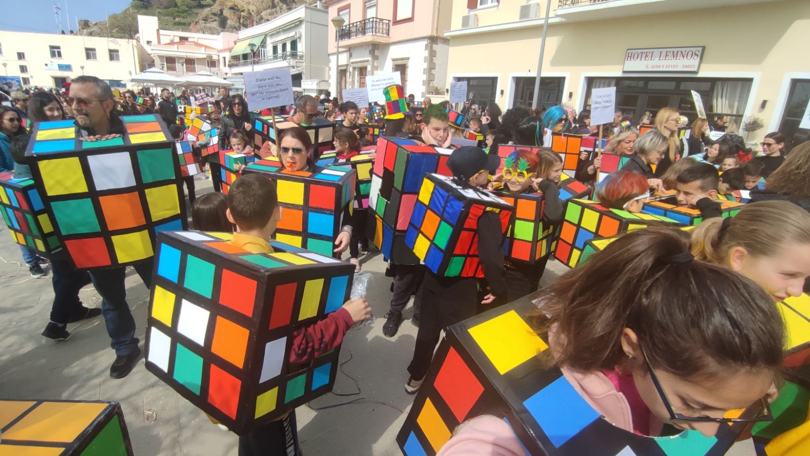 Η παρουσία του ΧΟΛ Ήφαιστος, που βρίσκονταν στην κορυφή της παρέλασης, ήταν εντυπωσιακή, από τη σύλληψη της ιδέας έως την εφαρμογή της, με εντυπωσιακό άρμα, στολές φροντισμένες μέχρι την τελευταία λεπτομέρεια και με θέμα συνυφασμένο με τη μυθολογία της Λήμνου.