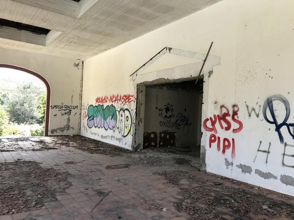 Η οροφή έχει καταρρεύσει, δέντρα και άγρια χόρτα άρχισαν να περικυκλώνουν τα κτήρια και να φράζουν τα δρομάκια που κάποτε ήταν προσβάσιμα. Είναι λογικό από ένα τέτοιου μεγέθους έργο να υπάρχουν τεράστιες εκκρεμότητες και χρέη προς τράπεζες, δάνεια, οφειλέτες και το δημόσιο, και το κτήριο να είναι μια μπερδεμένη δικαστικά υπόθεση, είναι όμως πραγματικά λυπηρό που μια τεράστια έκταση με έτοιμα σπίτια και κτίρια ρημάζει ενώ υπάρχουν ιδέες και άνθρωποι που θα μπορούσαν να του δώσουν και πάλι ζωή.
