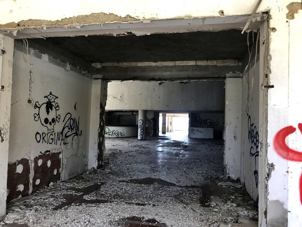 Στο τέλος άρχισαν να ξηλώνονται τα πάντα, ό,τι μπορεί να είχε αξία. Κουφώματα, σίδερα, αλουμίνια και τζάμια. Δεν έμεινε τίποτα απολύτως, εκτός από τους γυμνούς τοίχους σε μια έκταση δεκάδων στρεμμάτων. Φέτος, 10 χρόνια μετά την τελευταία μου επίσκεψη, παρατήρησα ότι σχεδόν δεν έχουν μείνει ούτε ντουβάρια και κεραμμύδια. Ακόμα και τα καλώδια έχουν ξηλωθεί από το εσωτερικό των τοίχων και οι σωληνώσεις από τα μπάνια. Στη θέση των ασανσέρ έχει μείνει απλά ο κενός χώρος καθώς ο εξοπλισμός έχει λεηλατηθεί ολοκληρωτικά..