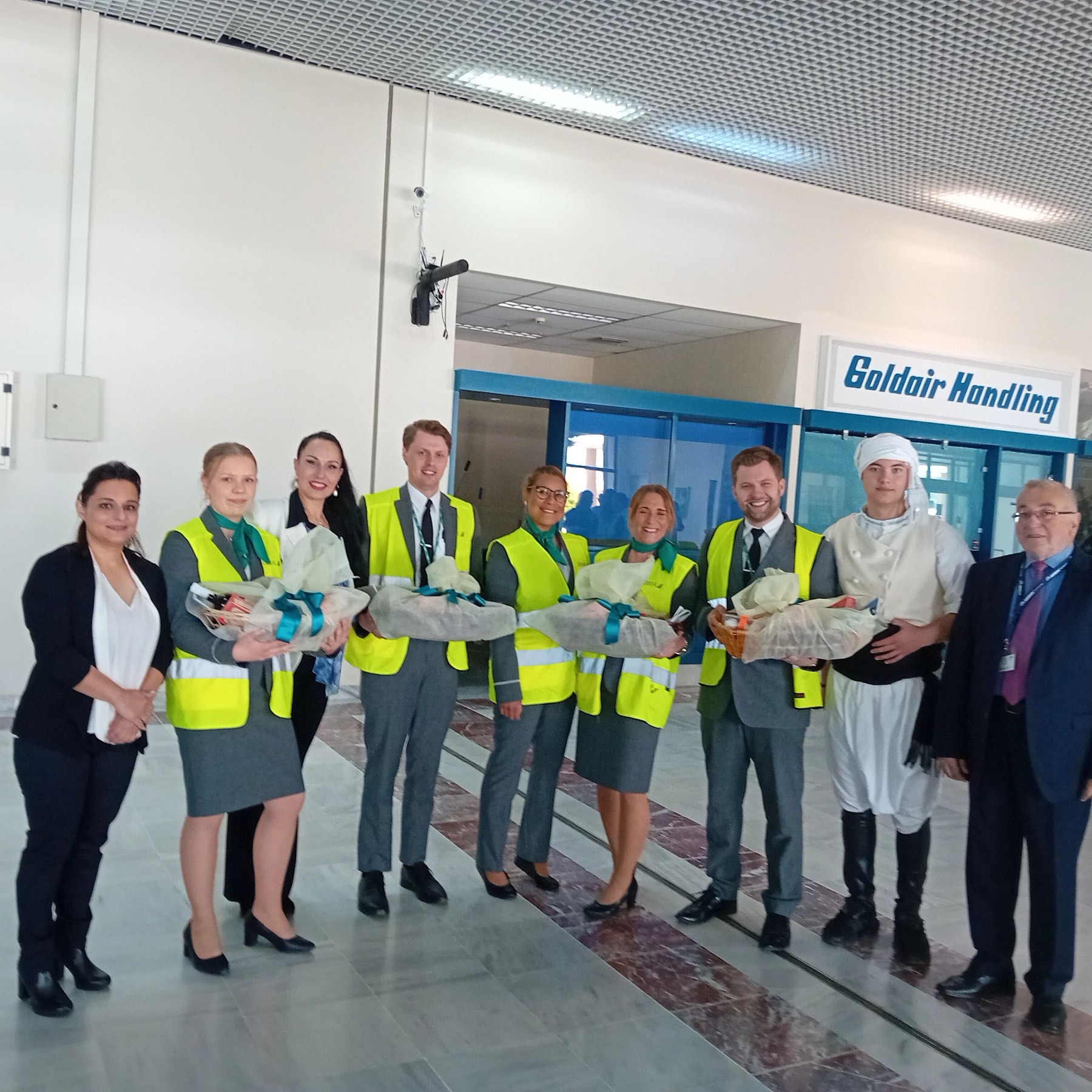Θερμό καλωσόρισμα των επισκεπτών της πρώτης πτήση charter
