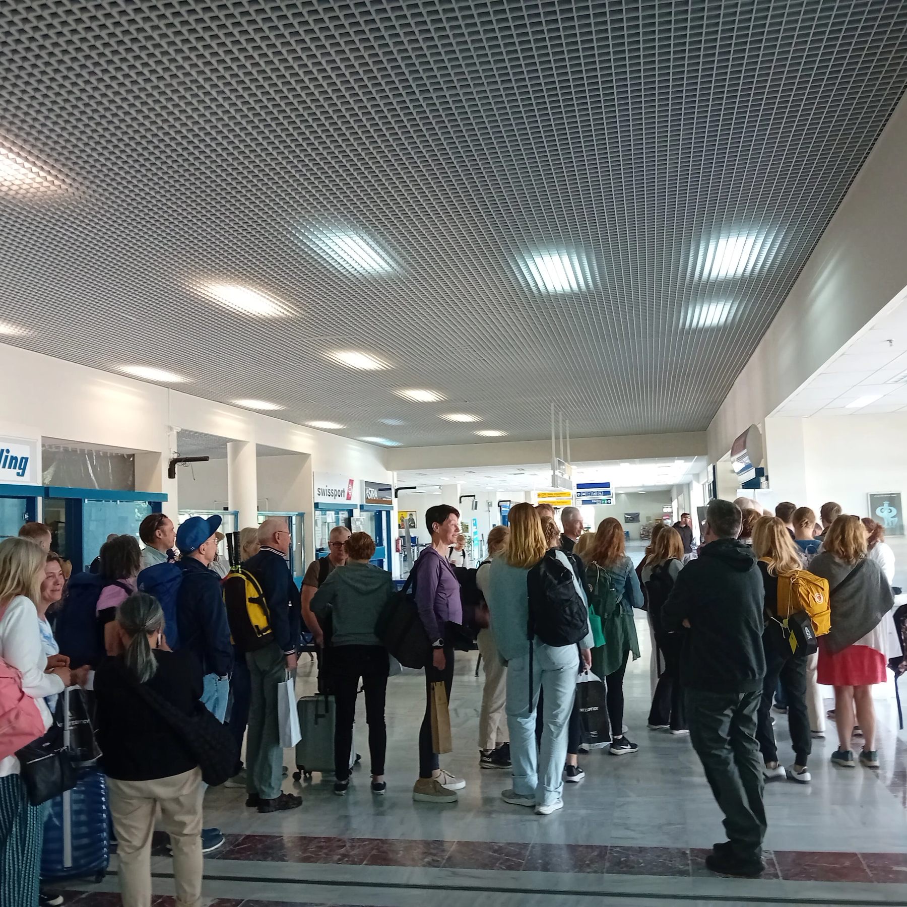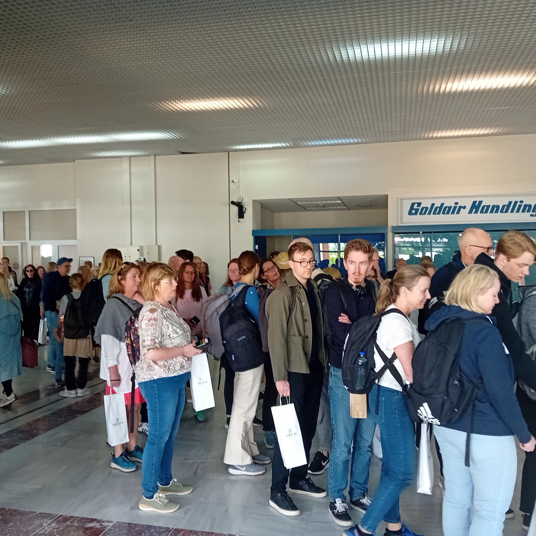 τους πρώτους 180 επισκέπτες που κατέφθασαν με πτήση charter από τη Σουηδία,