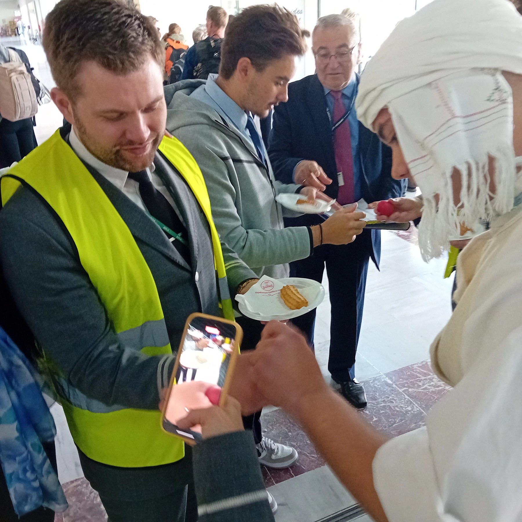 Η κ. Γαροφαλλίδου τους καλωσόρισε στα αγγλικά και στα Σουηδικά, οι επισκέπτες μας χάρηκαν την υποδοχή, ευχαρίστησαν για τα δώρα και προσπάθησαν να προσαρμόσουν τα βήματα τους σε έναν ελληνικό χορό, λίγο πριν ανέβουν στα λεωφορεία για να μεταφερθούν στα καταλύματά τους.