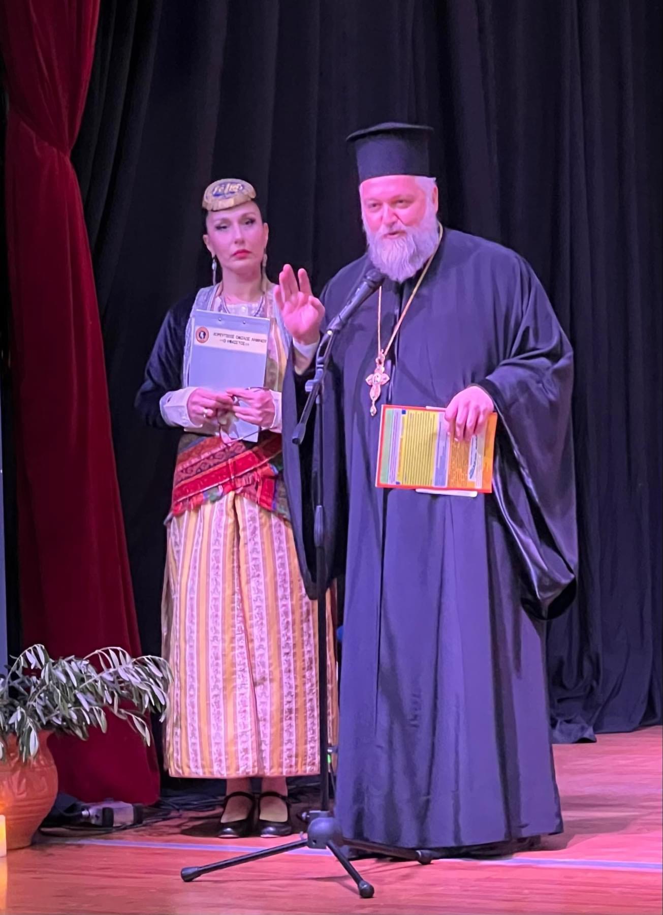 Ο Σεβασμιώτατος Μητροπολίτης μας κ. ΙΕΡΟΘΕΟΣ παρόλο που δεν ήταν παρών λόγω ανειλημμένων υποχρεώσεων, δεν παρέλειψε να στείλει εγγράφως τον χαιρετισμό του ο οποίος εστιάστηκε στην Γενοκτονία των Ελλήνων του Πόντου, διαβάστηκε από τον Πρωτοπρεσβύτερο της Ι.Μ. Λήμνου κ΄Αγ.Ευστρατίου π.Αναστάσιο Σαργέντη στην έναρξη της εκδήλωσης και ανέφερε τα εξής «μαζί με το Χριστός Ανέστη,τον αναστάσιμο χαιρετισμό, μεταφέρω τους πατρικούς χαιρετισμούς του Σεβασμιωτάτου ποιμενάρχου κ.ΙΕΡΟΘΕΟΥ στην αποψινή εκδήλωση του ΗΦΑΙΣΤΟΥ για τα 105 χρόνια από τη γενοκτονία των Ελλήνων Ποντίων αδελφών μας. Ένα από τα φρικτότερα εγκλήματα του 20ου αιώνα που στοίχισε πάνω από 350.000