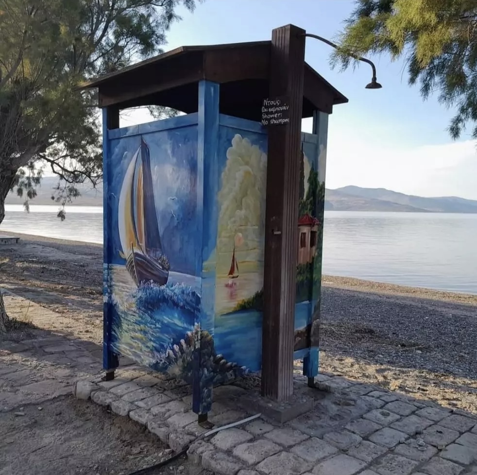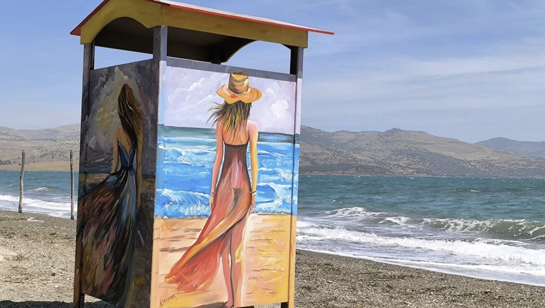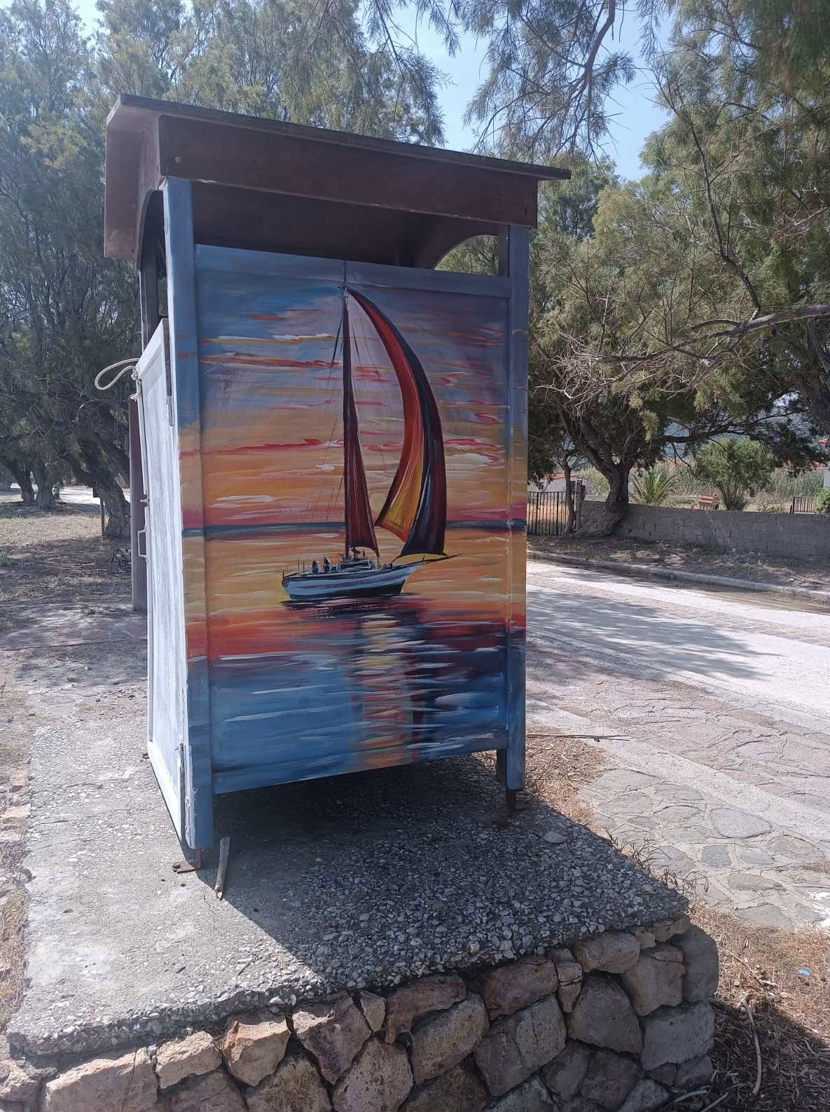Τώρα, ωριμότερος ο ίδιος, ωριμότερες και οι πινελιές του. Πρόσφατα με αυτές ομόρφυνε την είσοδο του χωριού του αλλά και τις καμπίνες στην παραλία Νυφίδας.