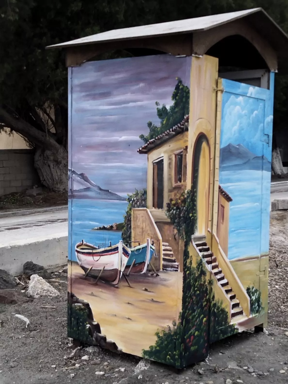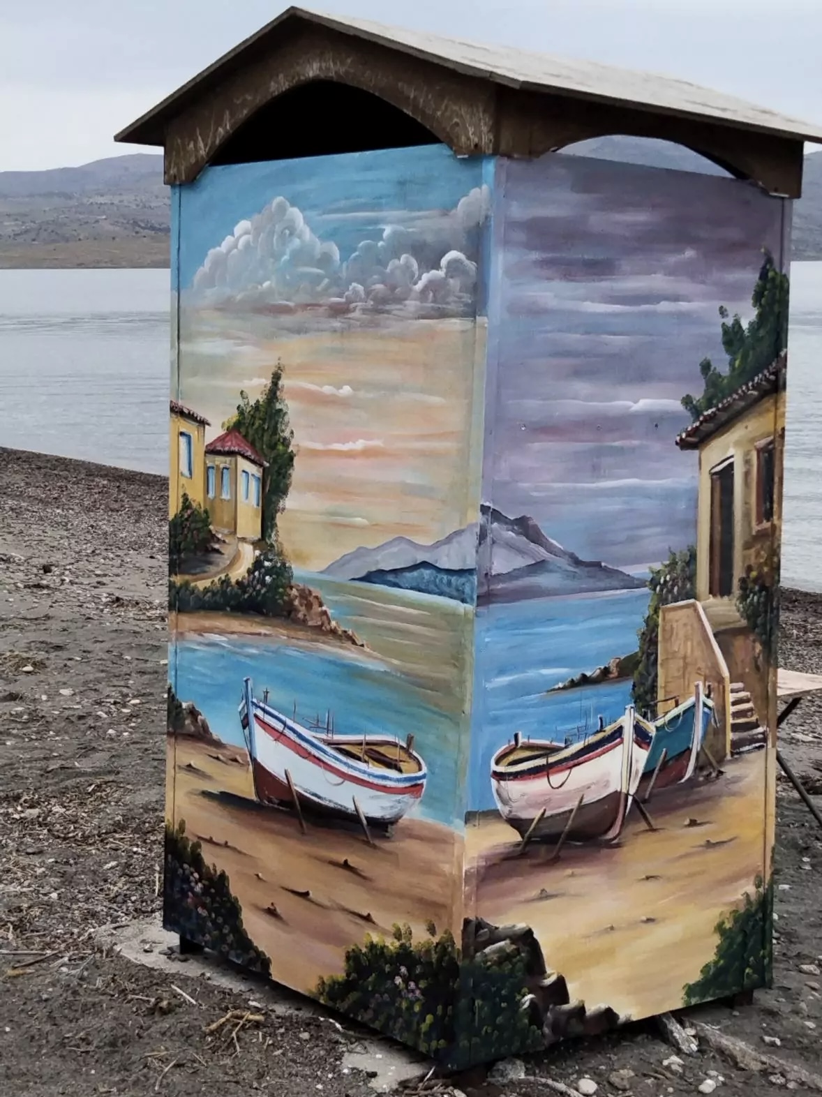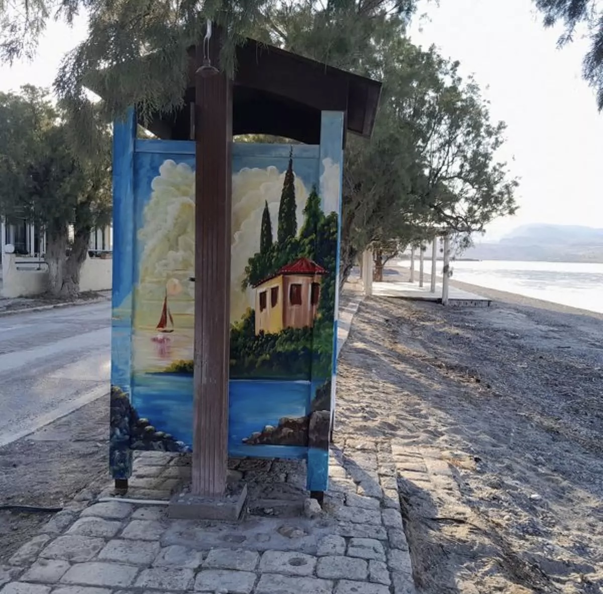Τώρα, ωριμότερος ο ίδιος, ωριμότερες και οι πινελιές του. Πρόσφατα με αυτές ομόρφυνε την είσοδο του χωριού του αλλά και τις καμπίνες στην παραλία Νυφίδας.