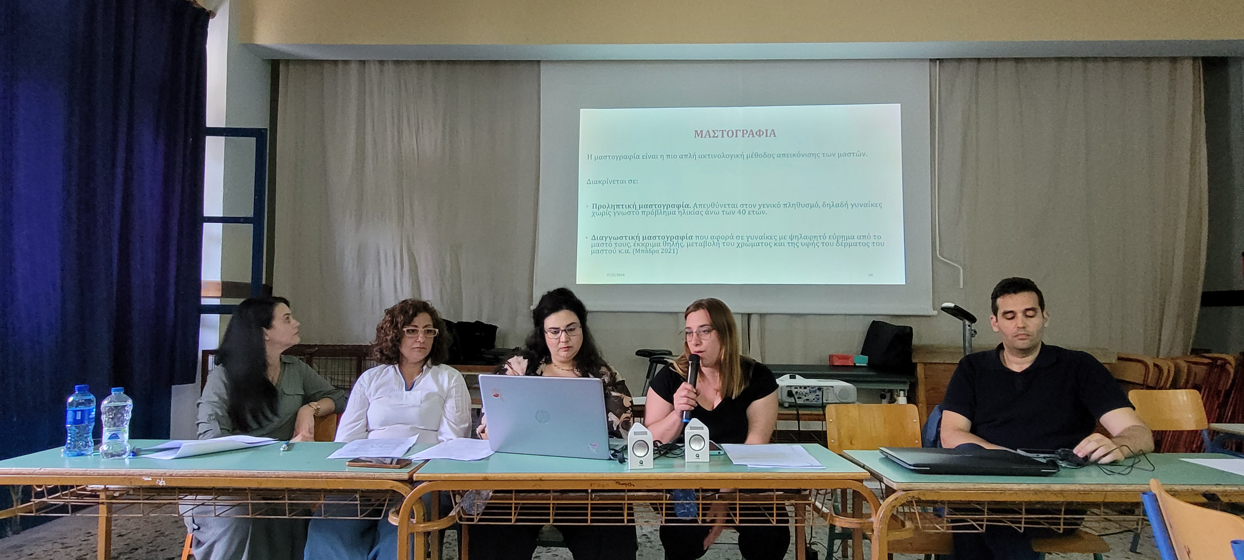 Στη συνέχεια, τη σκυτάλη πήρε η κυρία Παχούμη Μαρία, Νοσηλεύτρια και εκπαιδεύτρια επίσης της Σ.Α.Ε.Κ. Λήμνου, η οποία μαζί με τρεις καταρτιζόμενες της ειδικότητας «Βοηθός Νοσηλευτικής Γενικής Νοσηλείας», τις κυρίες Κουκουνάρη Χριστίνα, Μαρμαρά Σοφία και Ντίνου Αγγελική, ανέπτυξαν το θέμα της πρόληψης του καρκίνου του στήθους και του καρκίνου του τραχήλου της μήτρας.