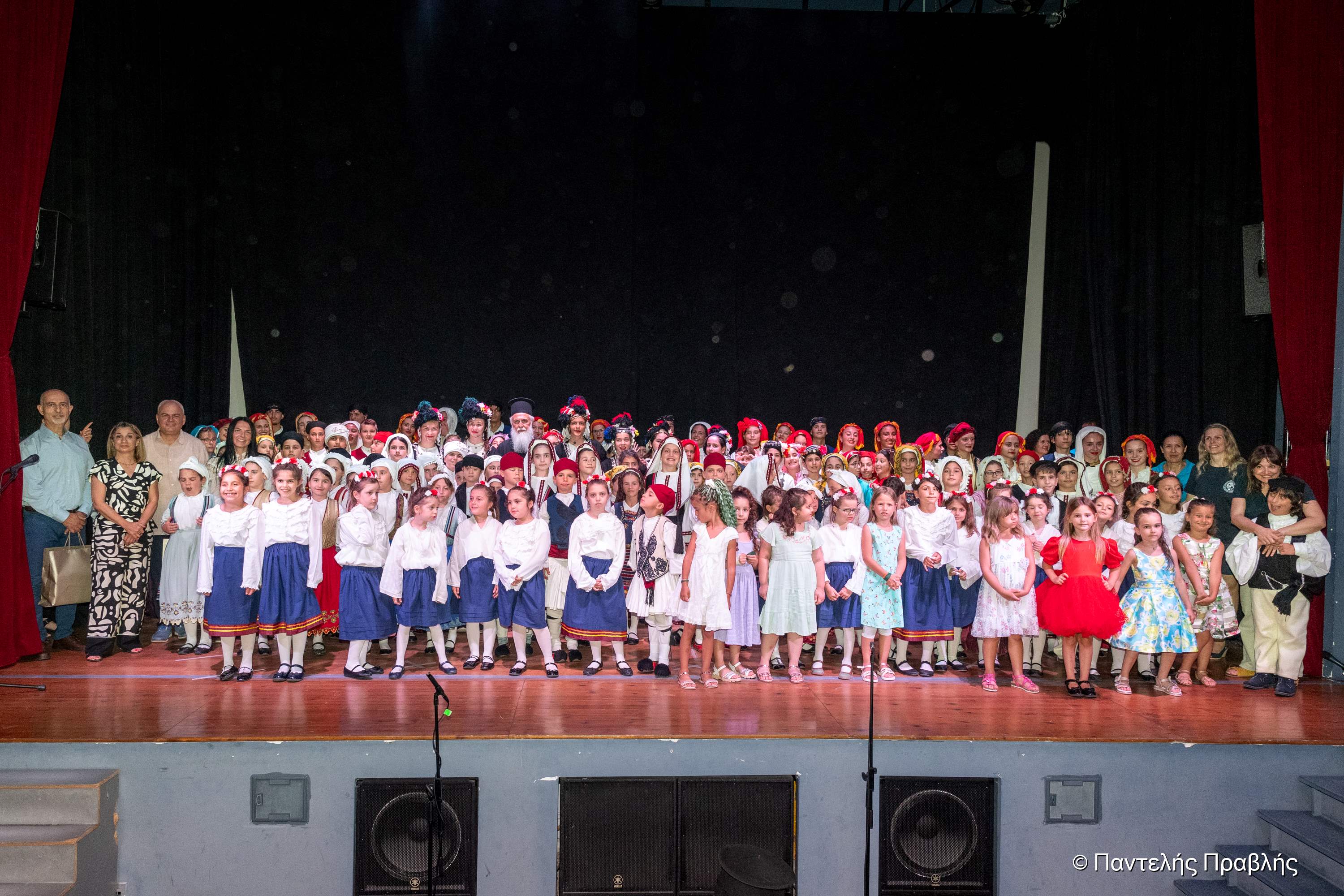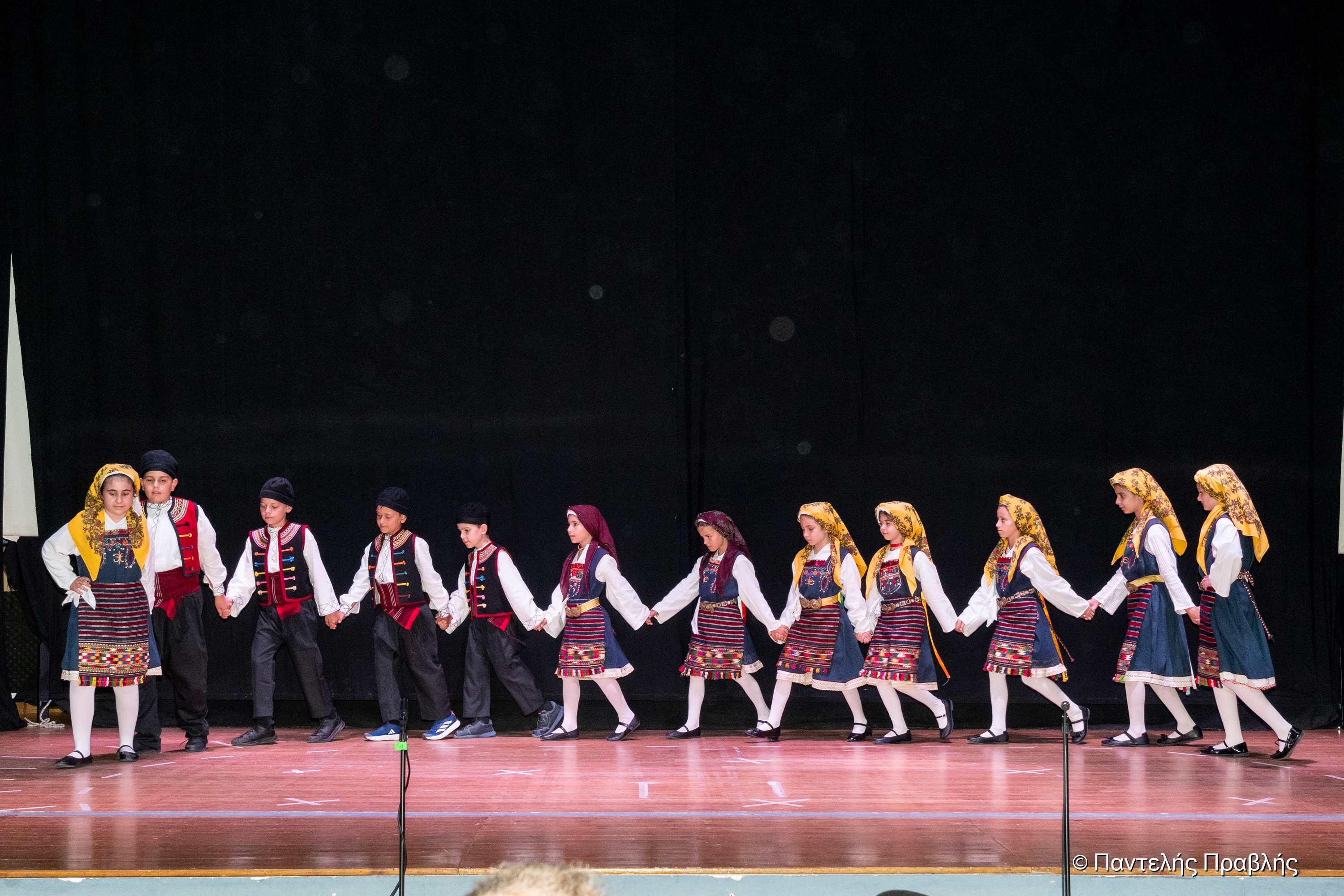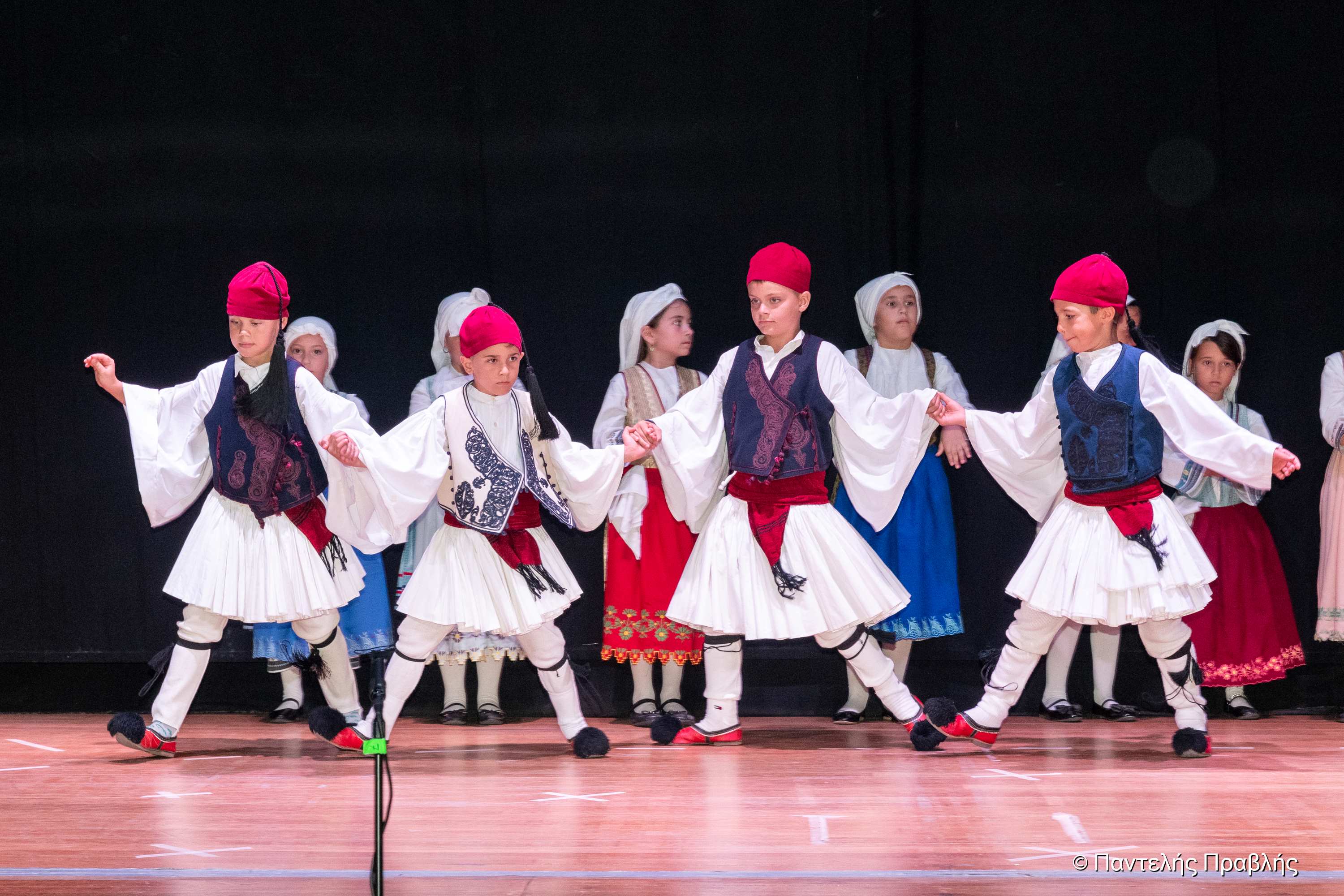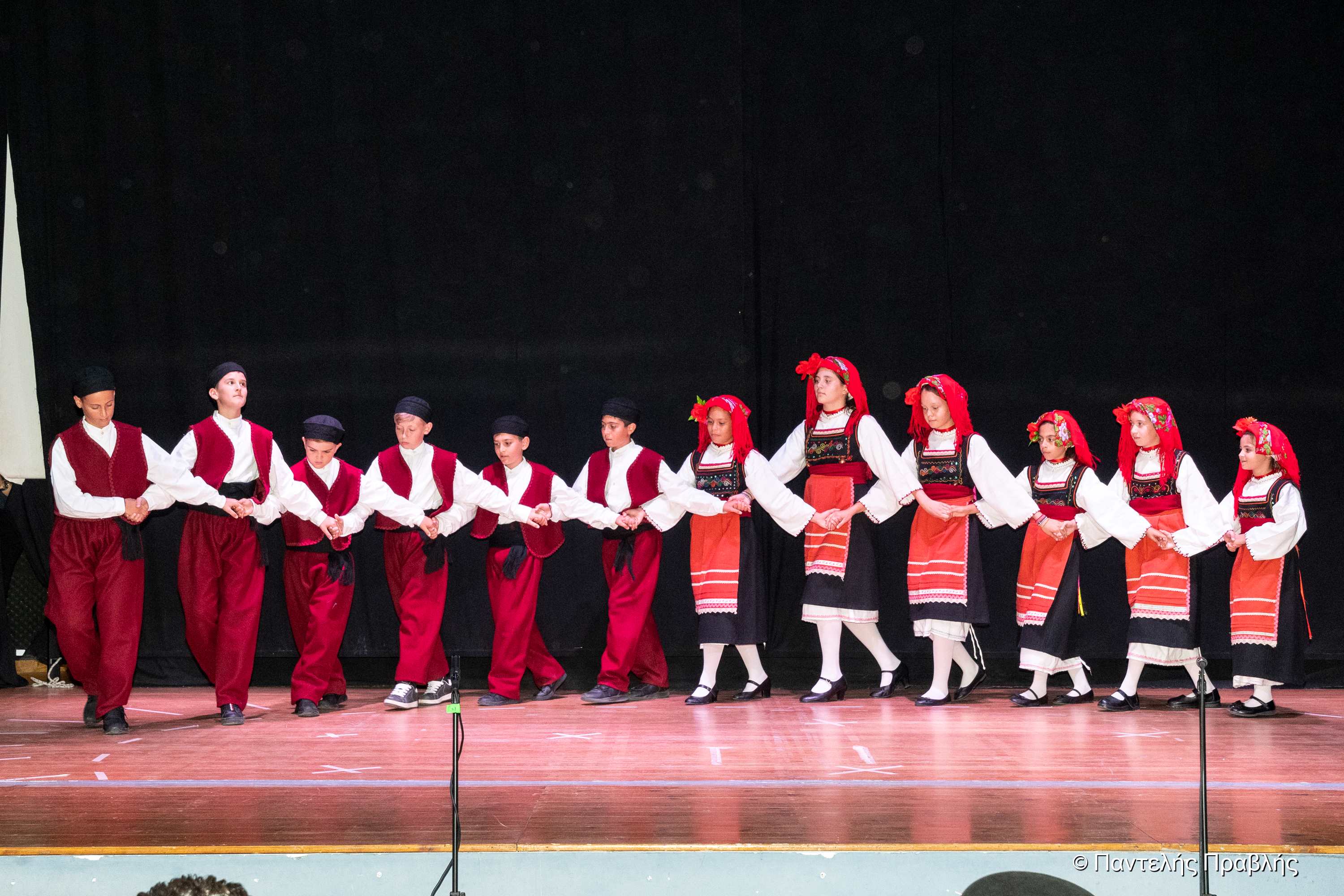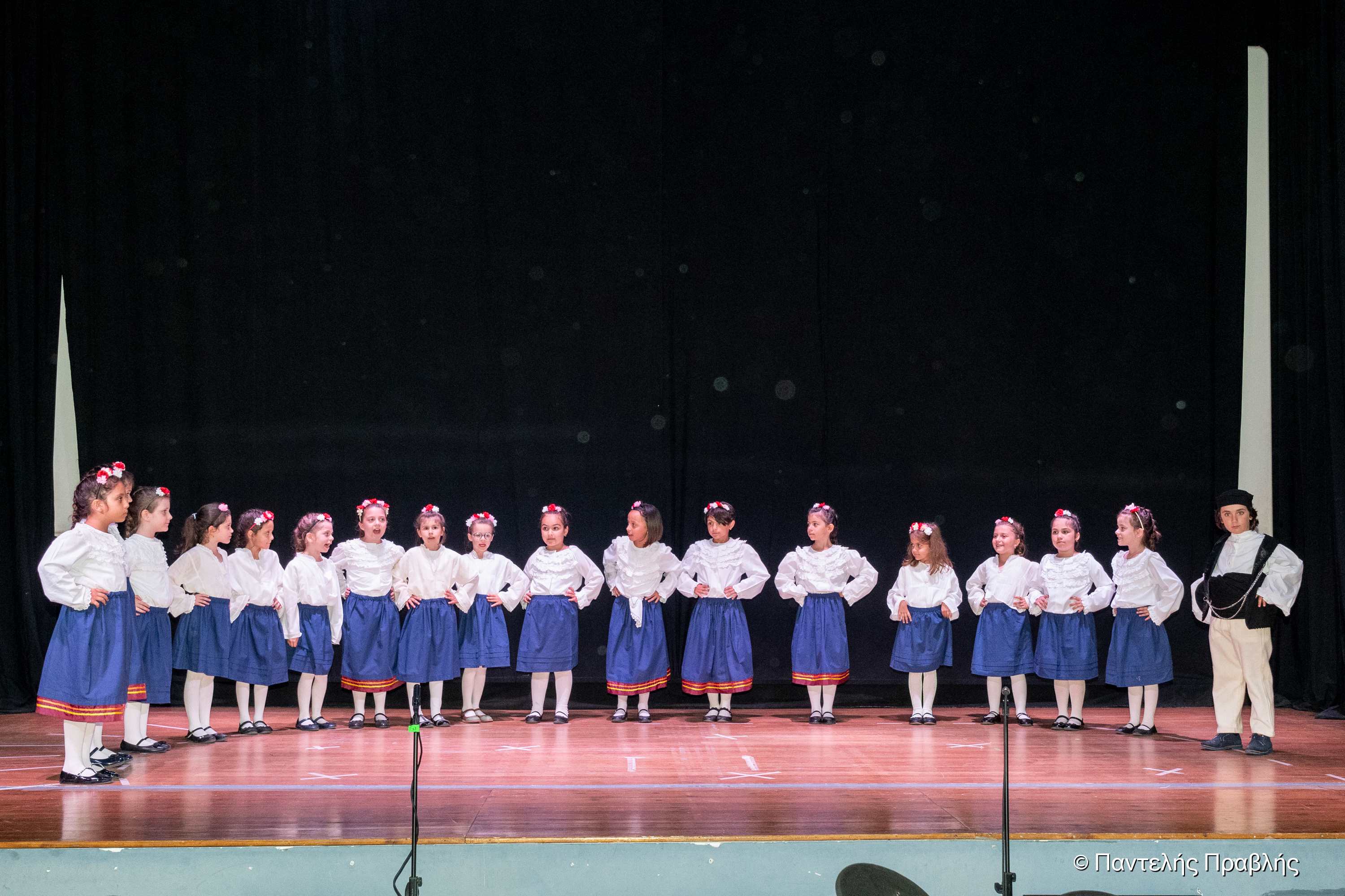 Οι πιο μικροί χορευτές και χορεύτριες από τις ομάδες της μουσικοκινητικής άνοιξαν την παράσταση με χελιδονίσματα, τραγούδια και χορευτικά μοτίβα. Ακολούθησαν οι μικρές σε ηλικία χορευτικές ομάδες, με τραγούδια και χορούς από την Πελοπόννησο, τη Θεσσαλία, την Ήπειρο, τη Μακεδονία και την Ανατολική Ρωμυλία-Μπάνα. Σειρά είχαν το Β. Αιγαίο, η Μακεδονία, τα Δωδεκάνησα και η Θράκη από τα μεγαλύτερα παιδιά, ενώ το κλείσιμο έκανε η εφηβική ομάδα με μια υπέροχη παρουσίαση τραγουδιών και χορών από την Κρήτη.
