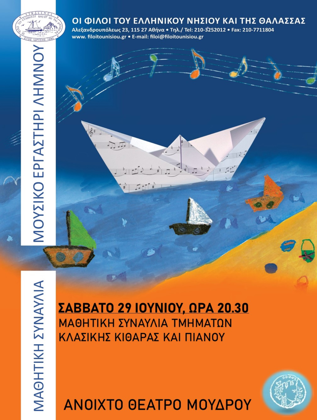 Τέλος, το μουσικό καραβάκι του Εργαστηρίου, θα ολοκληρώσει για φέτος το ταξίδι του, με την καθιερωμένη συναυλία των μουσικών του συνόλων.
