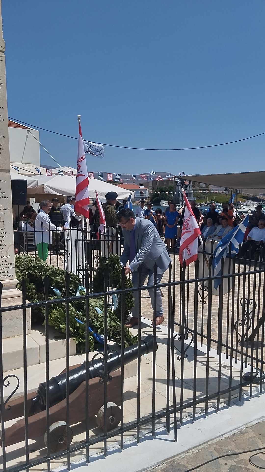 Στο περιθώριο των εκδηλώσεων, ο Πρόεδρος του Δημοτικού Συμβουλίου είχε συναντήσεις και επαφέςμε τον Σεβασμιώτατο Μητροπολίτη Χίου, Ψαρών & Οινουσσών κ.κ. Μάρκο, τον Δήμαρχο της Ηρωικής Νήσου Ψαρών κ. Κωνσταντίνο Βρατσάνο, τον εκπροσωπούντα την Κυβέρνηση Υφυπουργό Εσωτερικών, αρμόδιο για θέματα τοπικής αυτοδιοίκησης κ. Βασίλη Σπανάκη, τον Βουλευτή κ. Νότη Μηταράκη, ο οποίος εκπροσώπησε τη Βουλή των Ελλήνων, τον Γ.Γ. Αιγαίου και Νησιωτικής Πολιτικής κ. Μανώλη Κουτουλάκη τους Βουλευτές κ. Σταύρο Μιχαηλίδη και κ. Σεμίνα Διγενή, τον Αρχηγό ΓΕΕΘΑ Στρατηγό Δημήτριο Χούπη, τον Αρχηγό του Στόλου Αντιναύαρχο Πολυχρόνη Κουλούρη, τον Αντιπεριφερειάρχη κ. Νικόλαο Νύκτα και τους Δημάρχους Δυτικής Λέσβου κ. Ταξιάρχη Βέρρο, Χίου κ. Ιωάννη Μαλαφή και Οινουσσών κ. Γεώργιο Δανιήλ, τον Περιφερειακό Σύμβουλο κ. Παντελή Μπογδάνοκαι στελέχη των σωμάτων ασφαλείας.