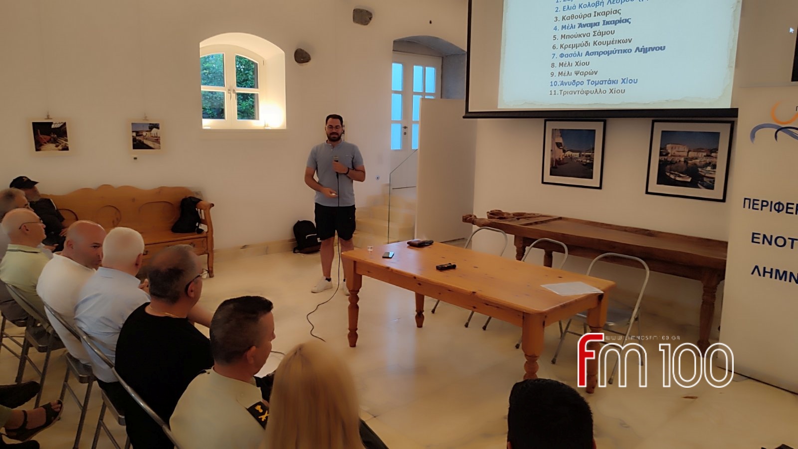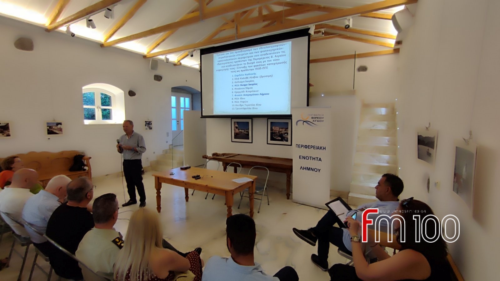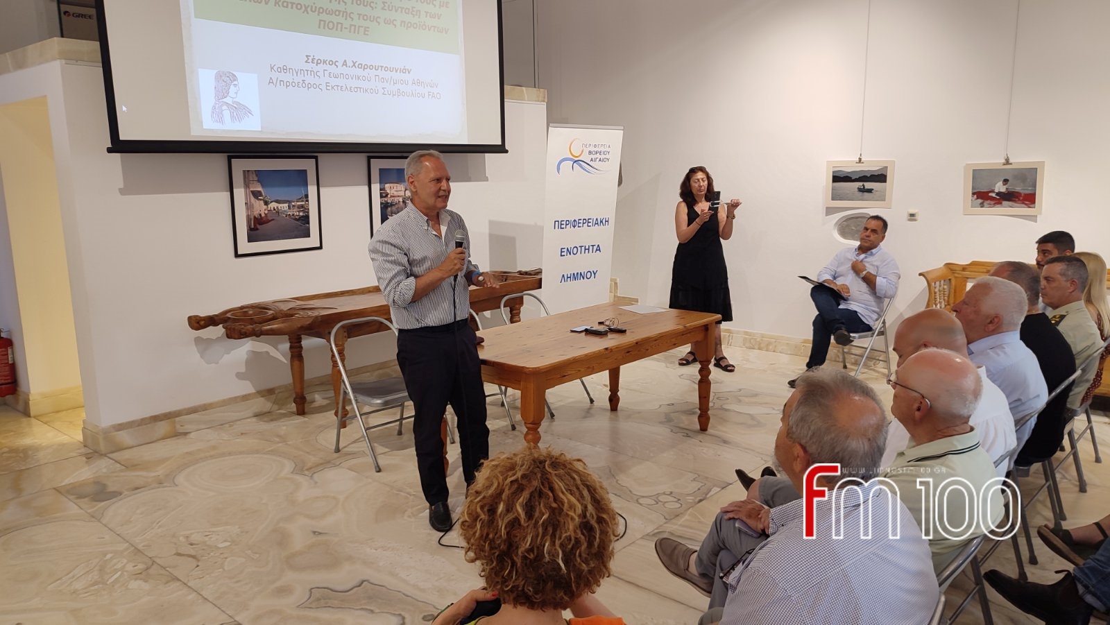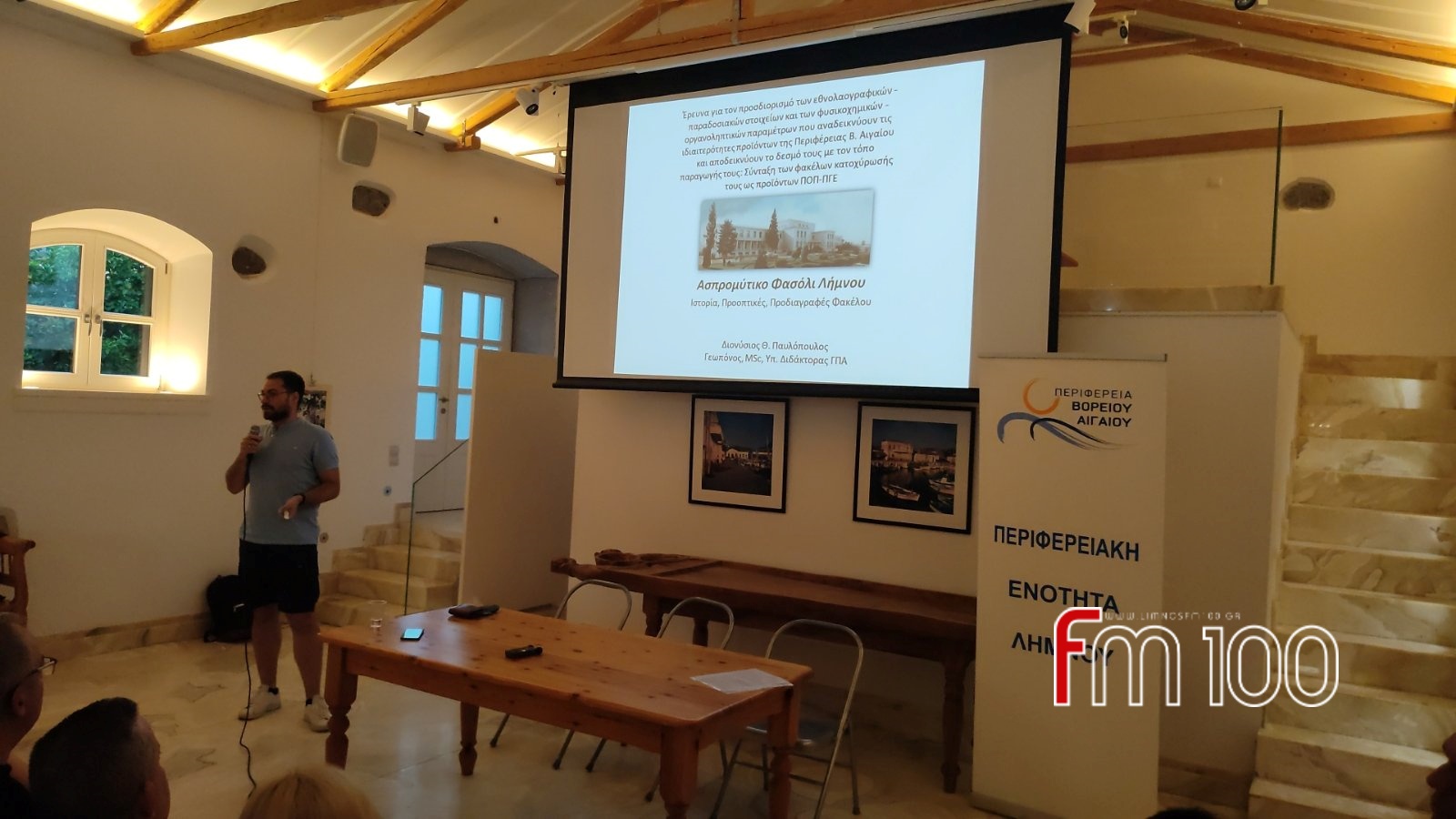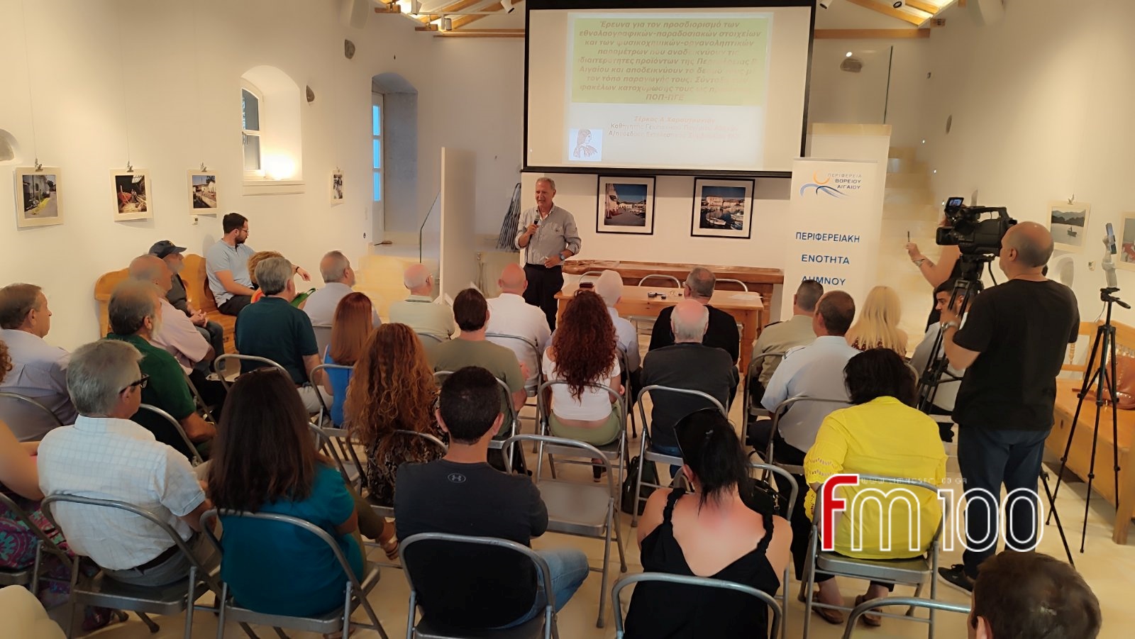 Στο φιλόξενο και πολύ όμορφο χώρο Αποθήκη, στο λιμανάκι της Μύρινας, η Περιφέρεια Βορείου Αιγαίου παρουσίασε στους Λημιούς ενδιαφερόμενους τον φάκελο που παρέλαβε από το Γεωπονικό Πανεπιστήμιο Αθηνών.