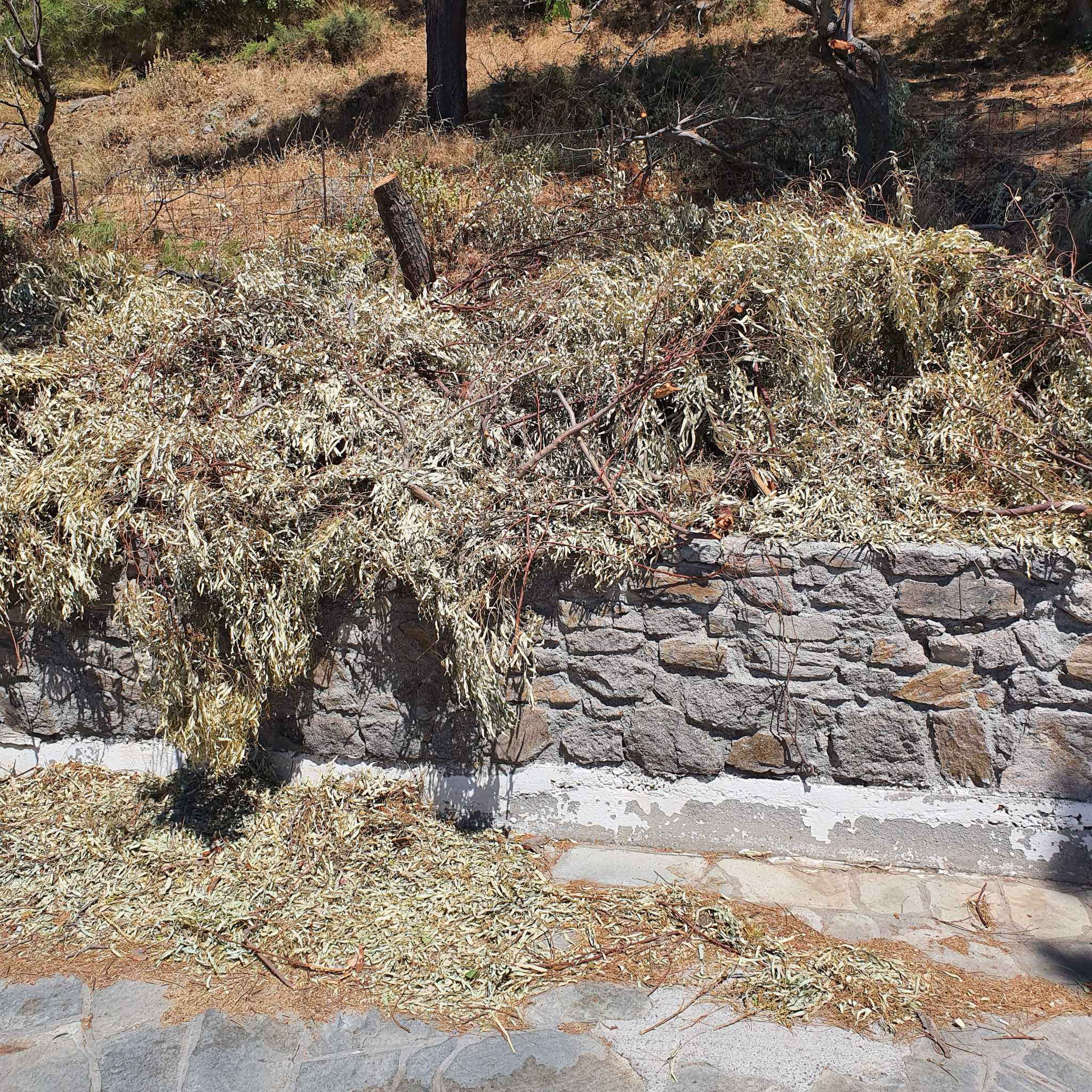 Έκτοτε, τα κομμένα κλαδιά παραμένουν στο σημείο, χωρίς να φροντίσει κανείς να τα απομακρύνει, δημιουργώντας στην περιοχή μια άσχημη εικόνα στην καρδιά του καλοκαιριού, αλλά κυρίως καύσιμη ύλη, πράγμα πολύ επικίνδυνο κατά την εποχή που διανύουμε.