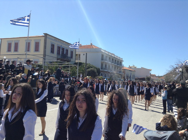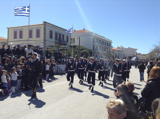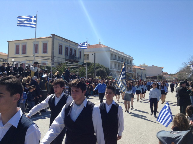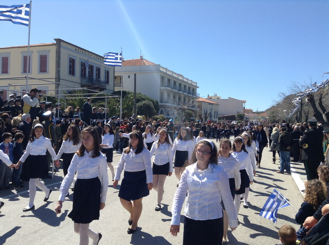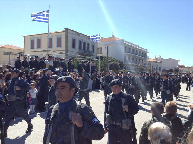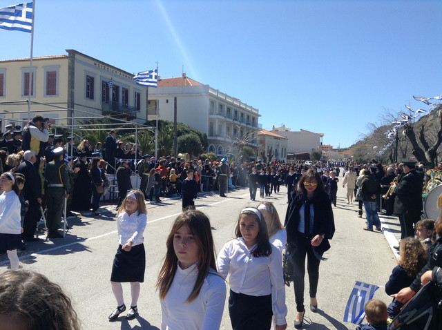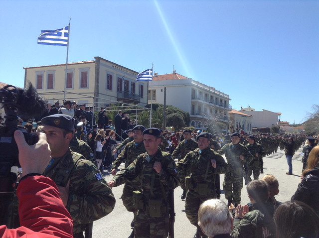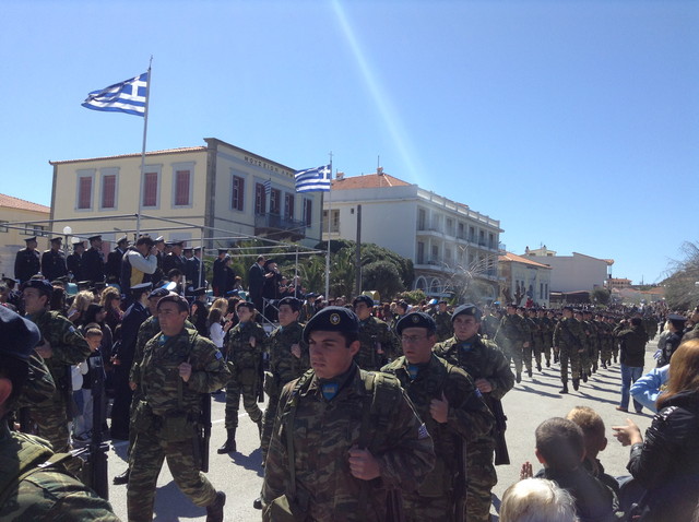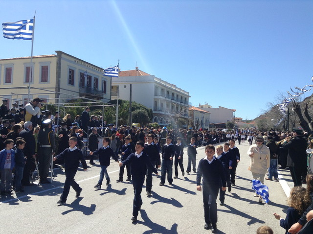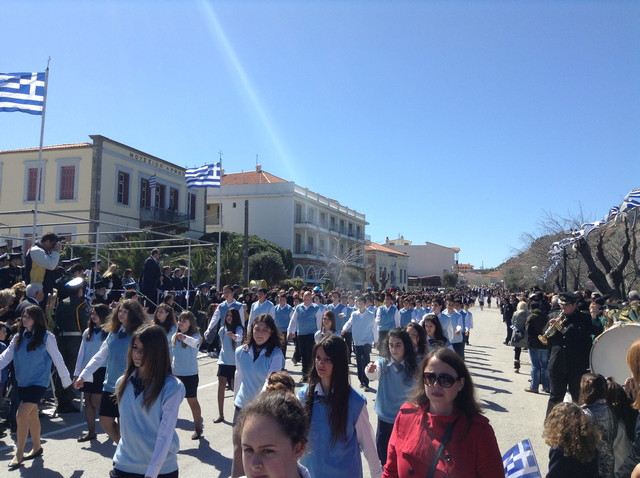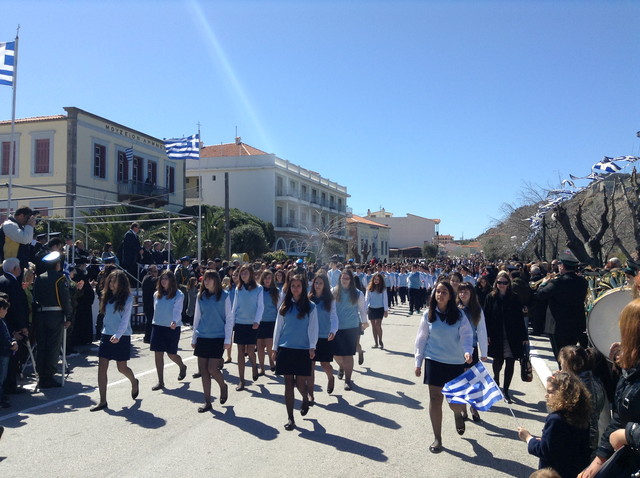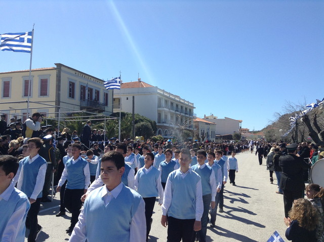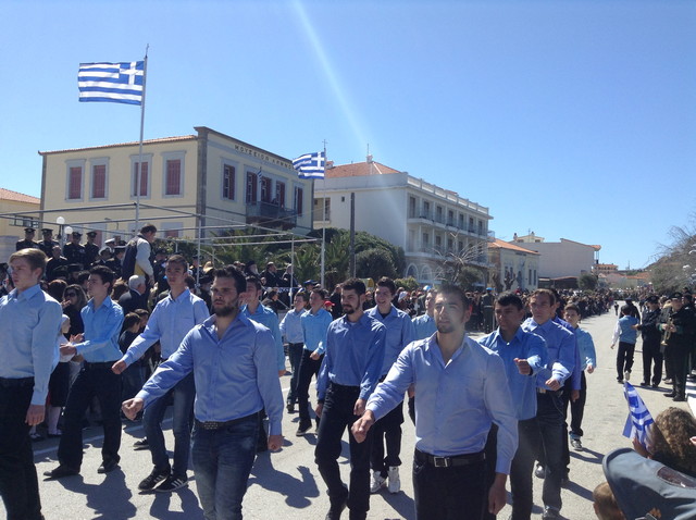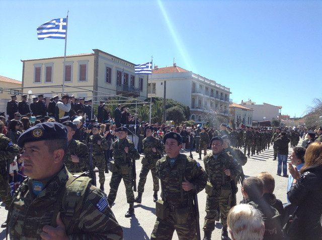 Ο καλός καιρός αποτέλεσε έναν καλό σύμμαχο και επέτρεψε τους κατοίκους του νησιού να κατακλύσουν το Ρωμέικο Γυαλό και να χειροκροτήσουν μαθητές και στρατιώτες.