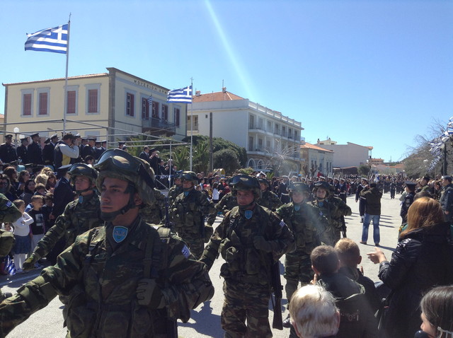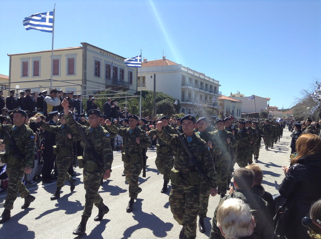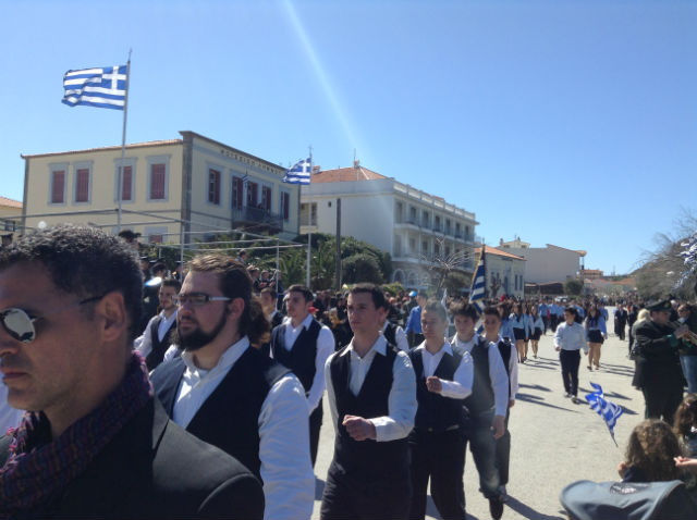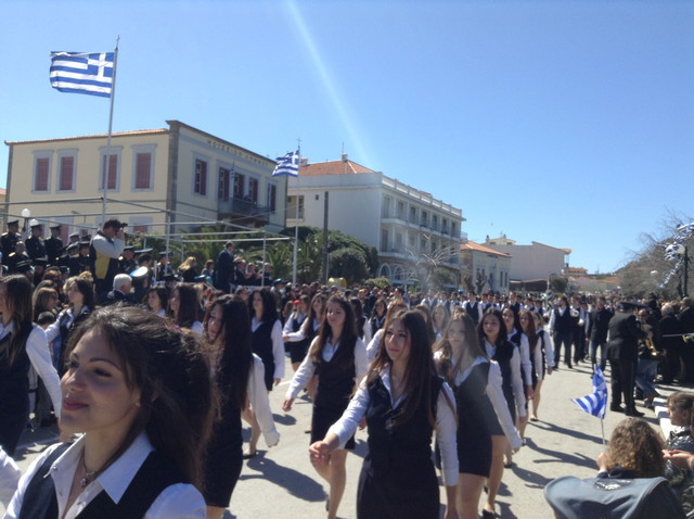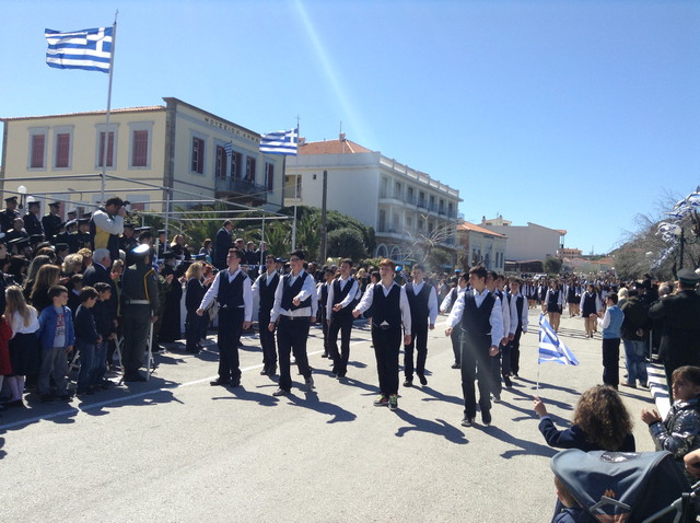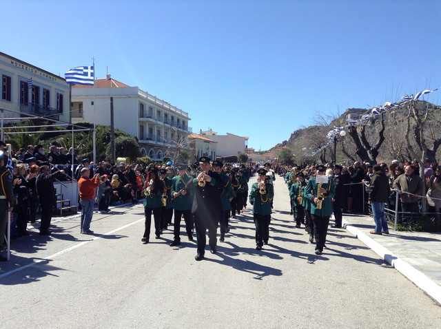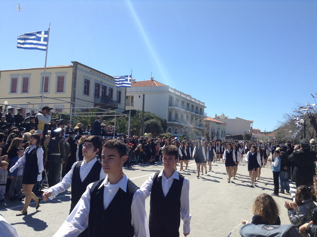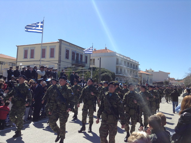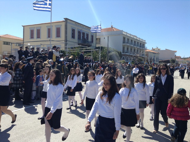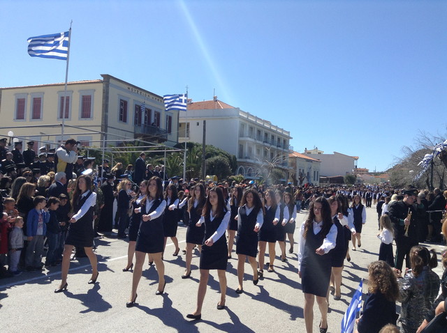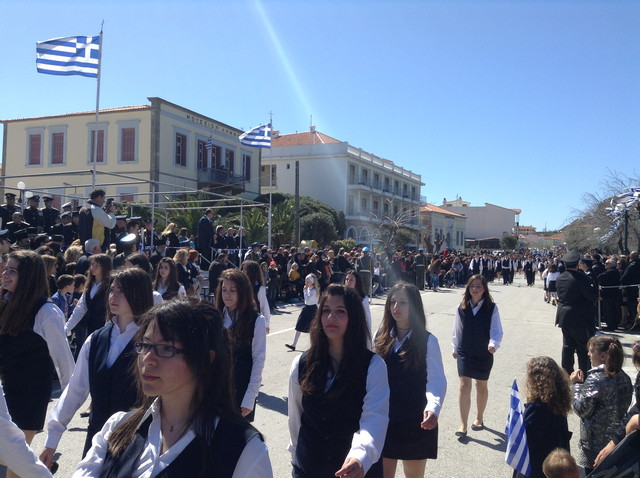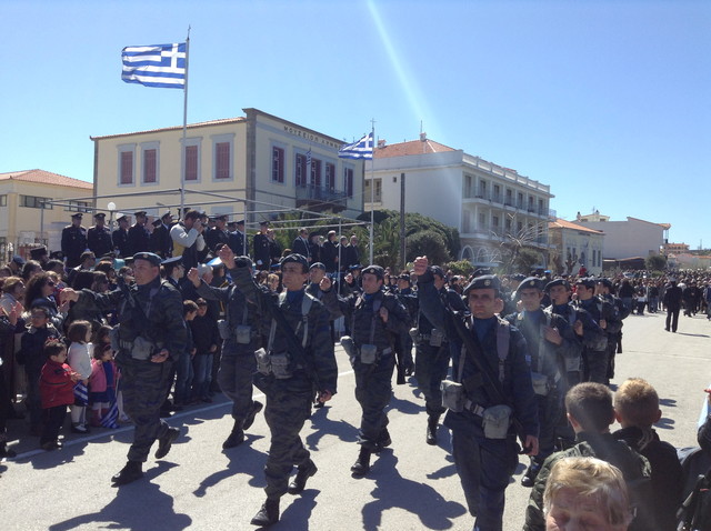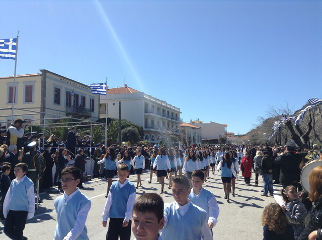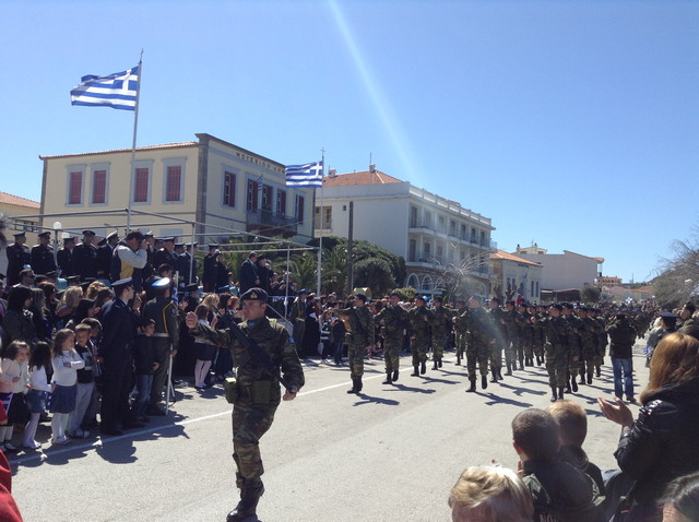 Ο καλός καιρός αποτέλεσε έναν καλό σύμμαχο και επέτρεψε τους κατοίκους του νησιού να κατακλύσουν το Ρωμέικο Γυαλό και να χειροκροτήσουν μαθητές και στρατιώτες.
