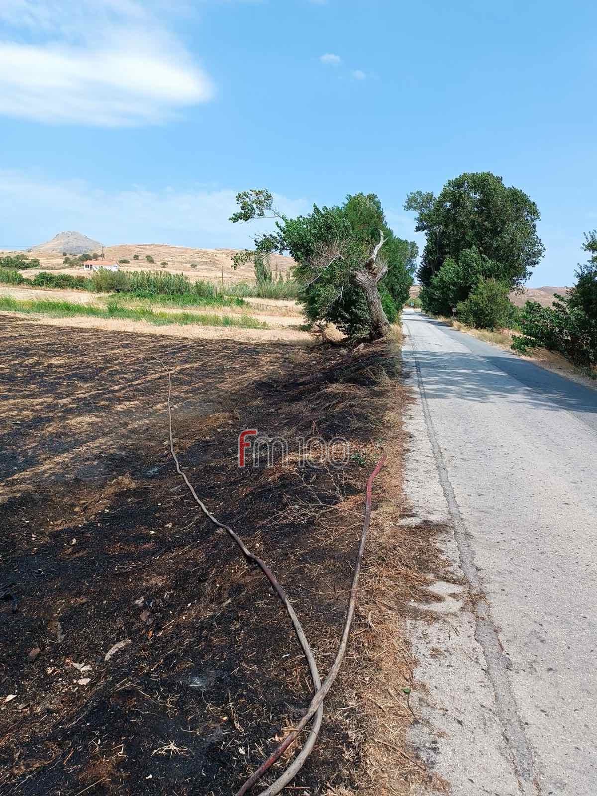 Η φωτιά, έκαψε ένα στρέμμα από υπολείμματα καλλιεργειών.