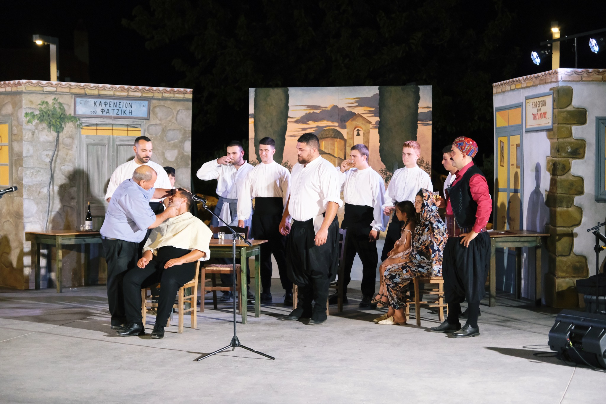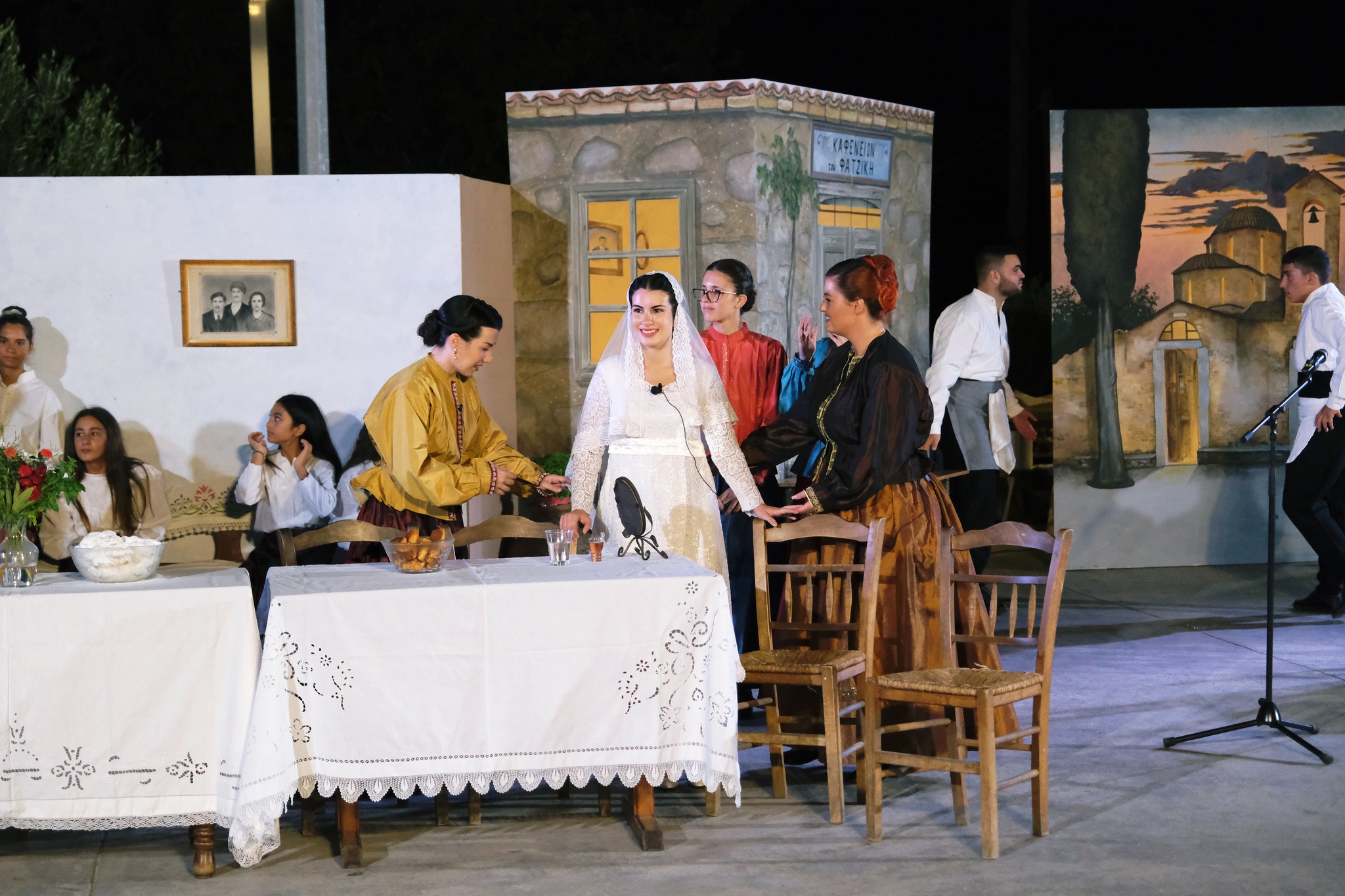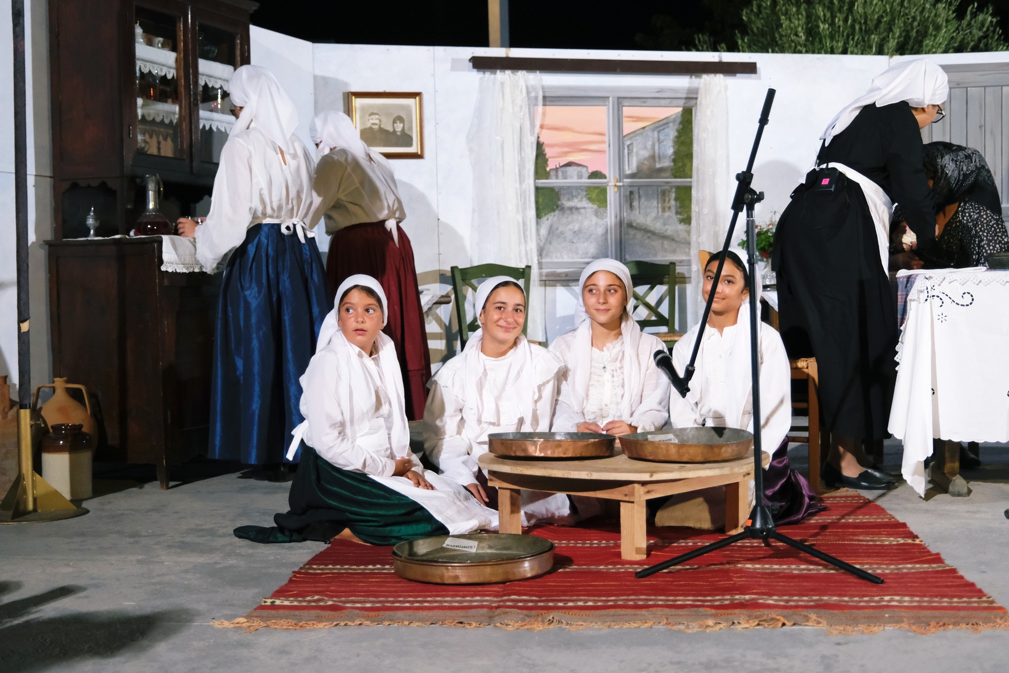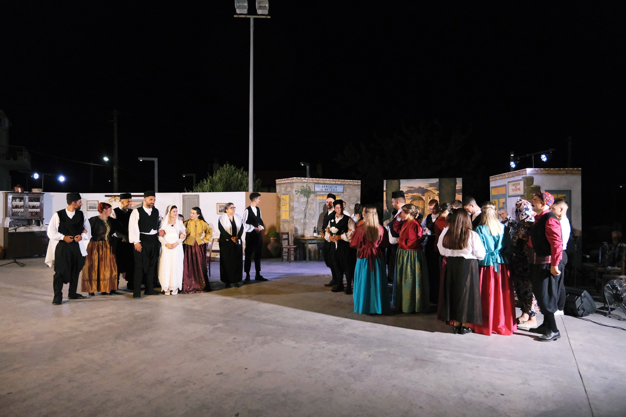 Εκεί όπου ο ΜΕΣ «Άγιος Δημήτριος» κατάφερε να «χτίσει» μια ολόκληρη γειτονιά χάρη στο ζωγράφο Κώστα Παντελιδάκη και τη βοήθεια του ξυλουργού Νίκου Μαρκάκη. Δεκάδες παλιά αντικείμενα, εργόχειρα, σκεύη, διακόσμησαν το σκηνικό με τη βοήθεια του Δημήτρη Γκαράλη, του Γιάννη Καλογιάννη και του Γιάννη Σπανού. Η Μαρία Φαντζίκη προσέφερε τον εξοπλισμό του καφενείου του Αντώνη και της Σοφίας Φαντζίκη. Η Μοδίστρα Ευγενία Ταρασίδου επιμελήθηκε την ενδυμασία όσων συμμετείχαν και η Ραφαέλα Πατρώνια τα χτενίσματα και το μακιγιάζ.