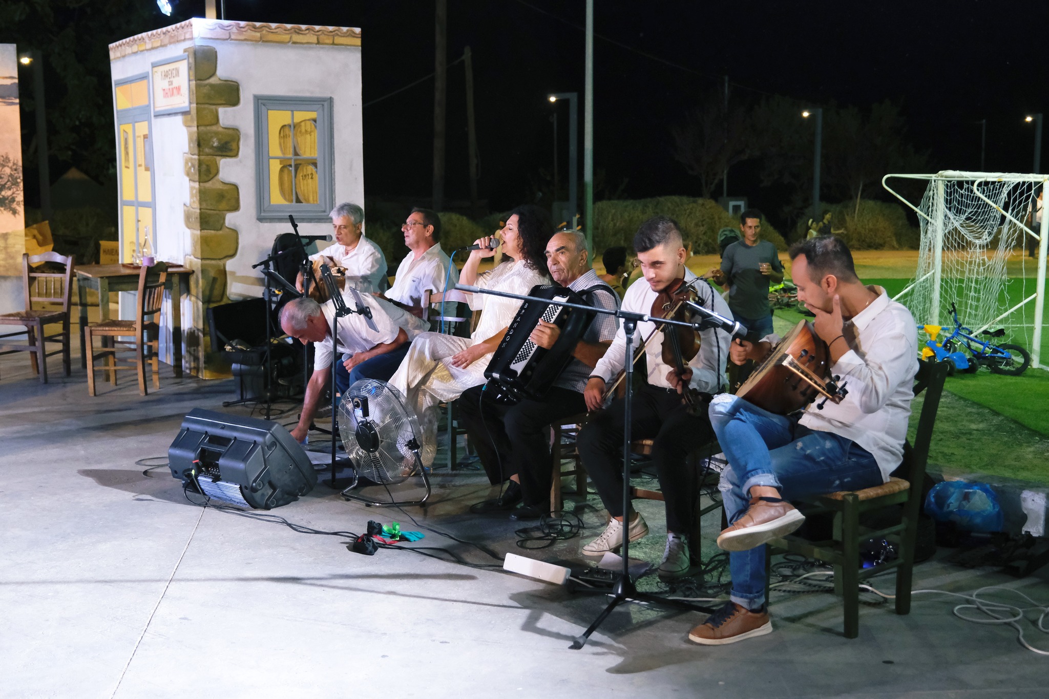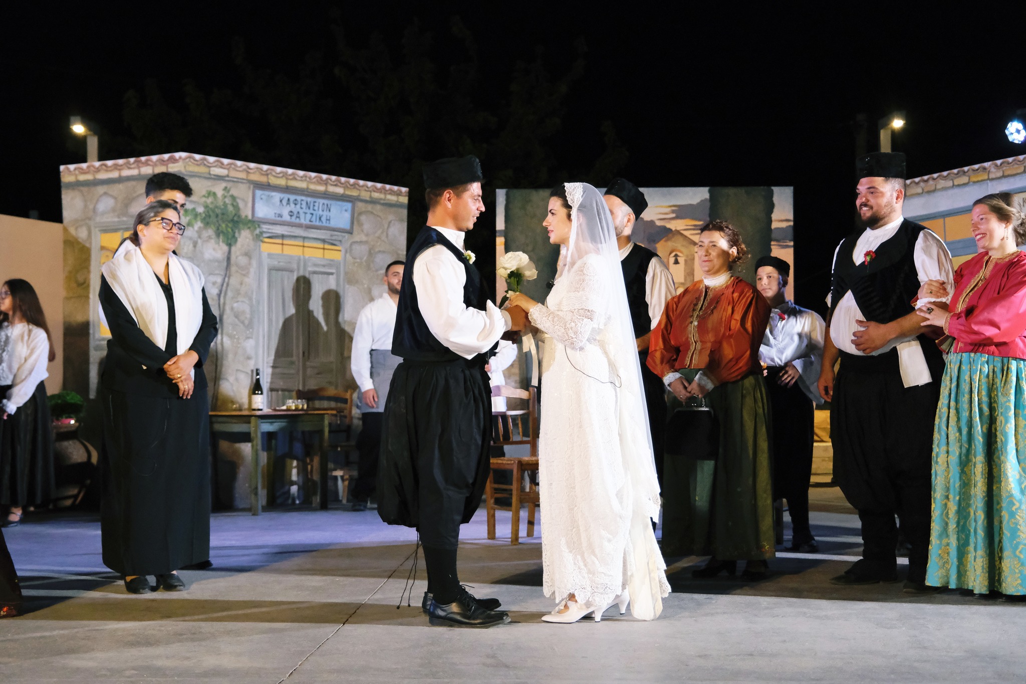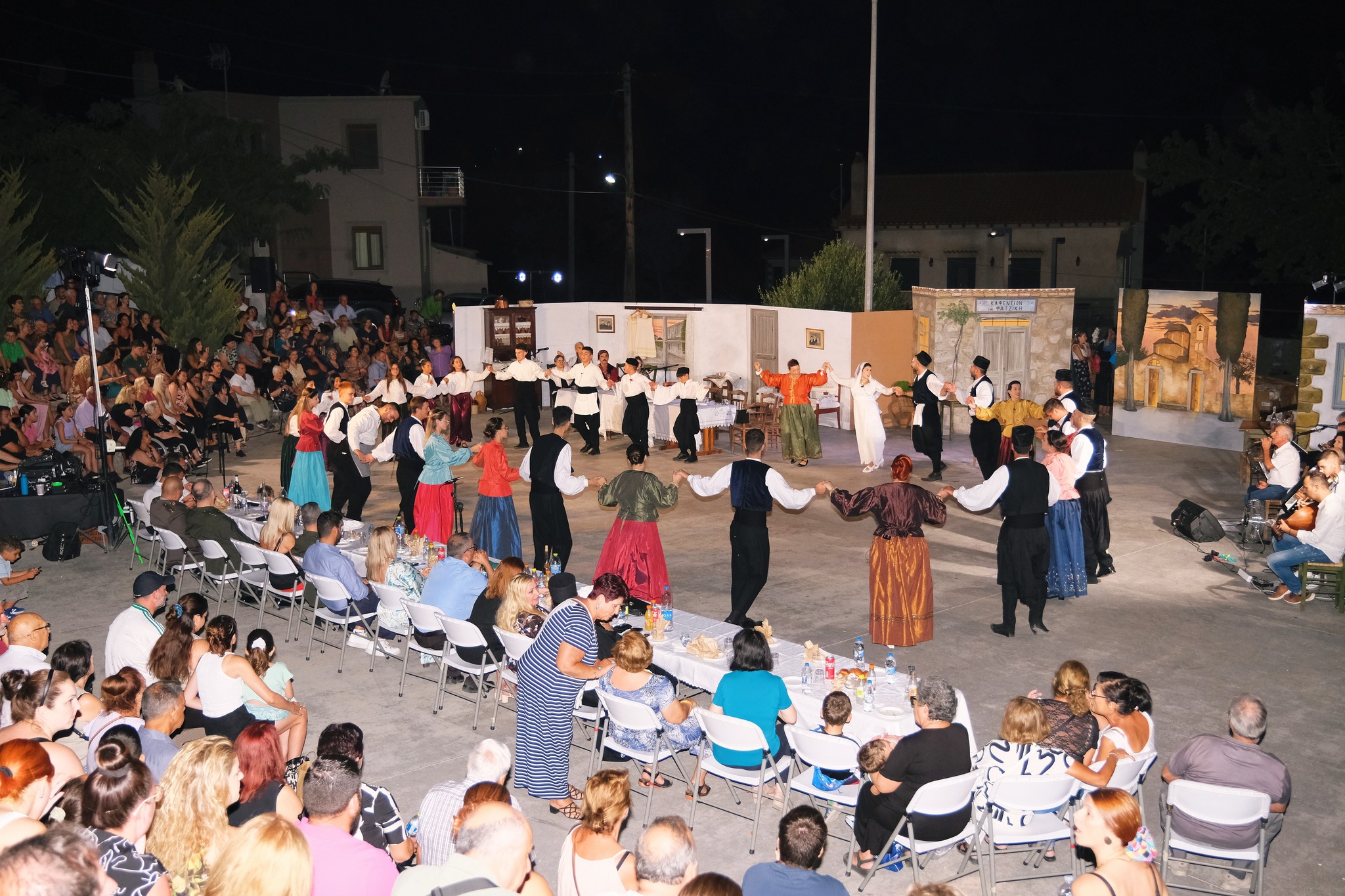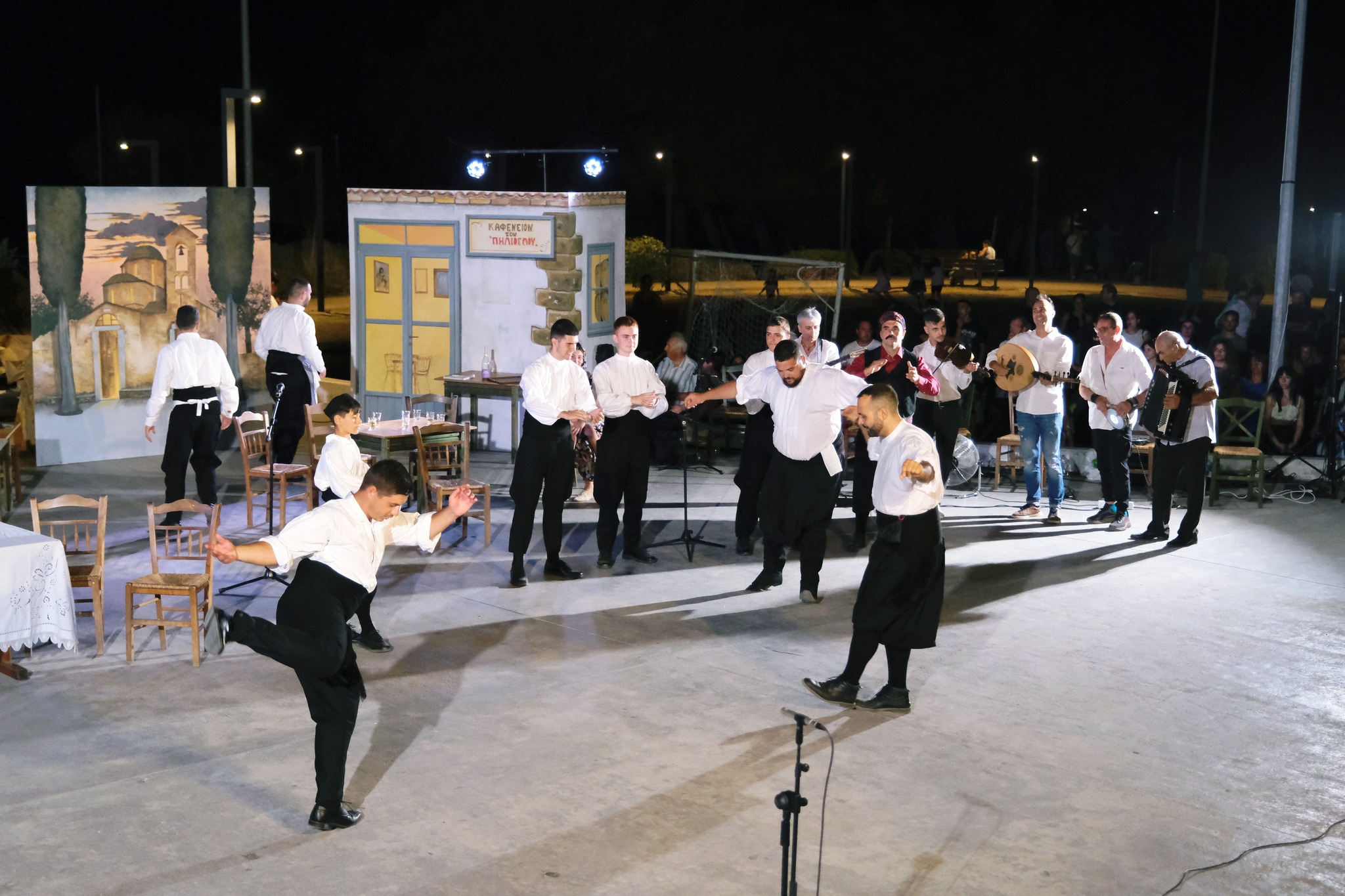 Εκεί όπου ο ΜΕΣ «Άγιος Δημήτριος» κατάφερε να «χτίσει» μια ολόκληρη γειτονιά χάρη στο ζωγράφο Κώστα Παντελιδάκη και τη βοήθεια του ξυλουργού Νίκου Μαρκάκη. Δεκάδες παλιά αντικείμενα, εργόχειρα, σκεύη, διακόσμησαν το σκηνικό με τη βοήθεια του Δημήτρη Γκαράλη, του Γιάννη Καλογιάννη και του Γιάννη Σπανού. Η Μαρία Φαντζίκη προσέφερε τον εξοπλισμό του καφενείου του Αντώνη και της Σοφίας Φαντζίκη. Η Μοδίστρα Ευγενία Ταρασίδου επιμελήθηκε την ενδυμασία όσων συμμετείχαν και η Ραφαέλα Πατρώνια τα χτενίσματα και το μακιγιάζ.