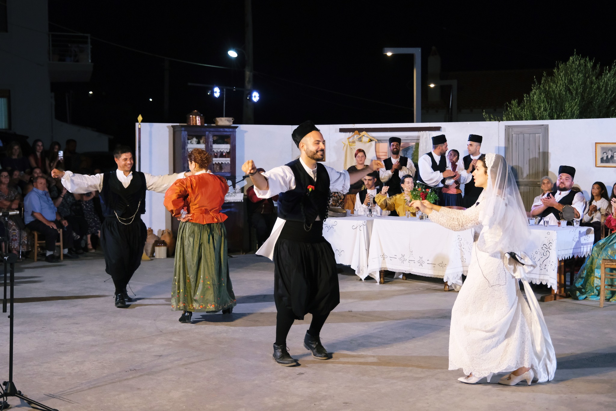 Τα παραδοσιακά κεράσματα «λουκούμια γάμου» και κουραμπιέδες που μοιράστηκαν στον κόσμο, επιμελήθηκαν οι γυναίκες του χωριού. Ο Άγγελος Πατρώνιας προσέφερε το «θολό νερό», δηλαδή τσίπουρο με γλυκάνισο και ο Μανώλης Γκαράλης κρασιά από το οινοποιείο του. Ο Θύμιος Γουδέλης και ο Θεόφιλος Διαματάρης επιμελήθηκαν τον ήχο, ενώ ο Γιώργος Ελιάς και η παρέα του έστησαν το γλέντι του γάμου.