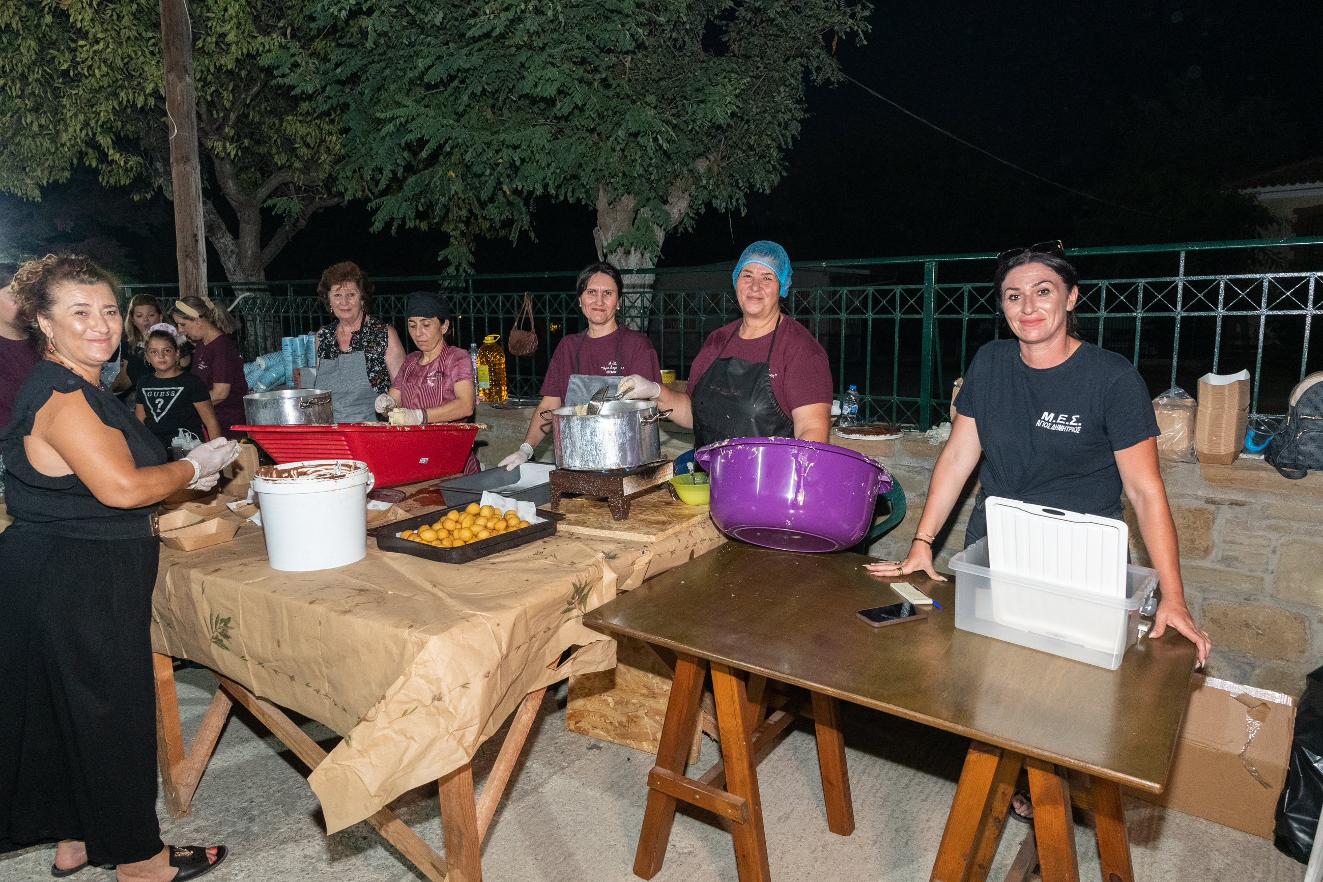 Από νωρίς το απόγευμα τα κάρβουνα πήραν φωτιά, προκειμένου οι ψησταριές να υποδεχθούν τα ζουμερά σουβλάκια. Πάγκοι με ροδοκόκκινους λουκουμάδες συνοδευμένοι με μέλι Λήμνου ή πραλίνα, μαλλί της γριάς, παγωτά αλλά και αναψυκτικά και νερά κατάφεραν να γλυκάνουν και να δροσίσουν τον κόσμο που βρέθηκε στη γιορτή.