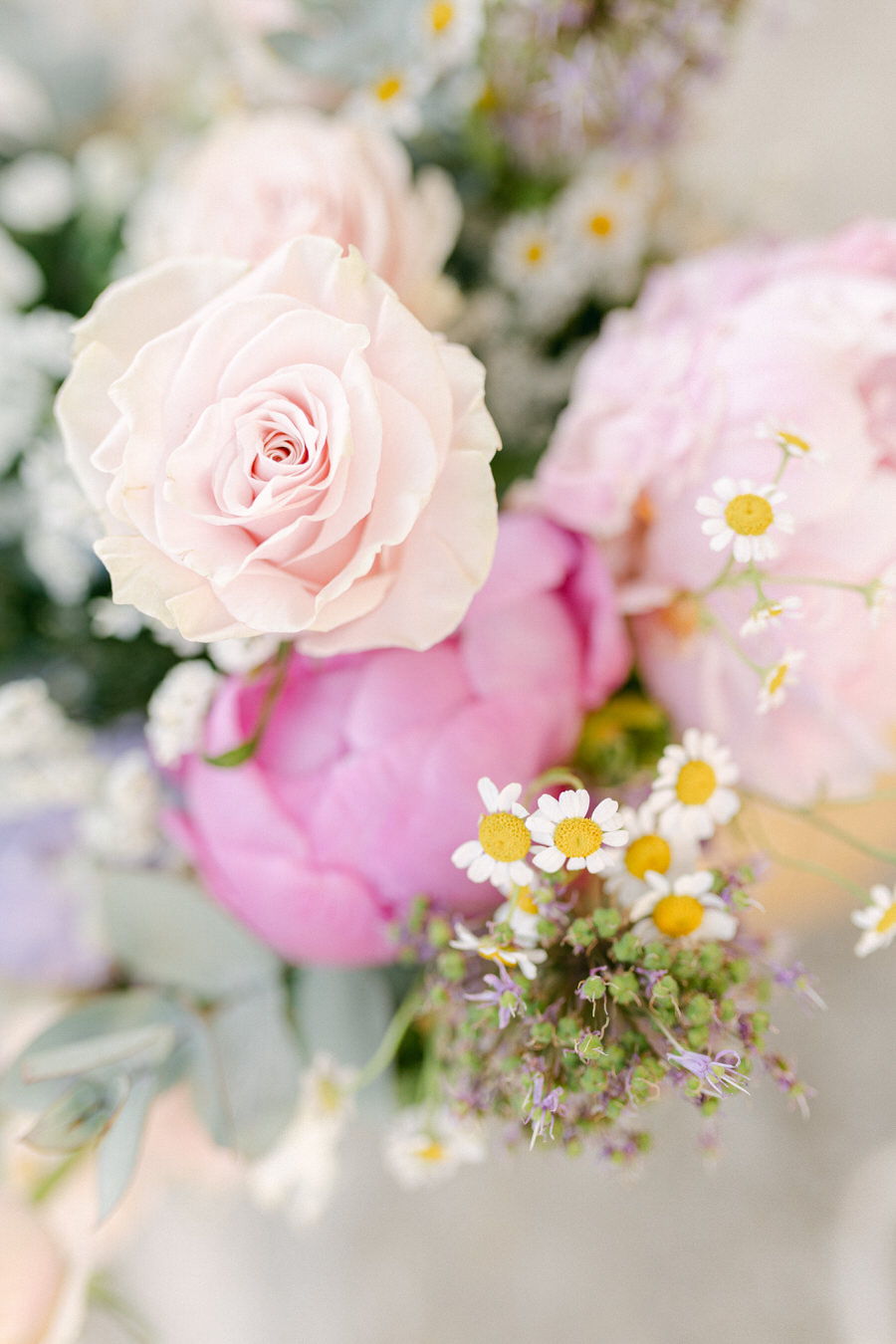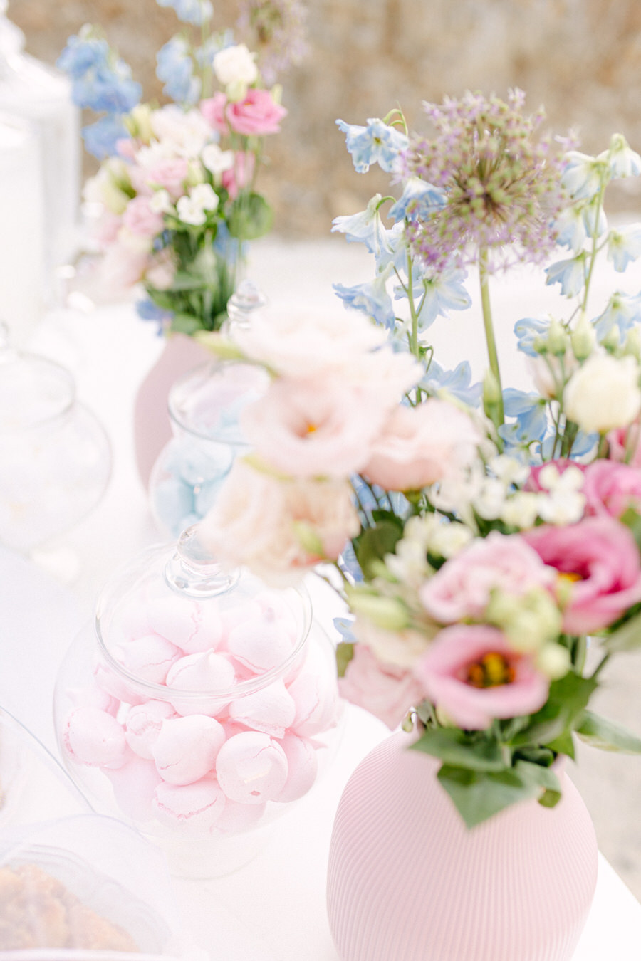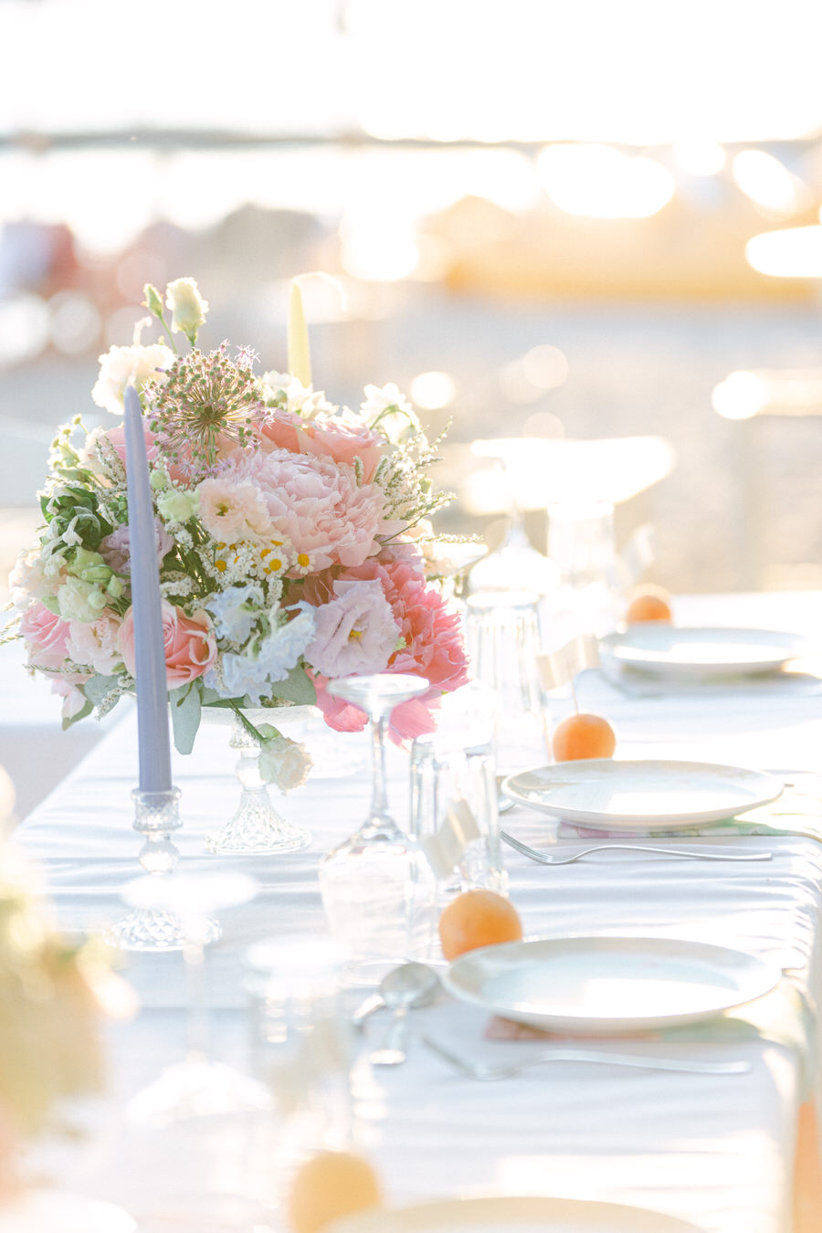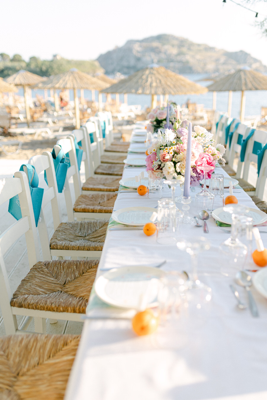 Η Θάλεια και ο Γιάννης ήθελαν ο γάμος τους να αντανακλά τη φυσική ομορφιά της Λήμνου, γι' αυτό επέλεξαν ένα μινιμαλιστικό αλλά κομψό θέμα. Η χρωματική παλέτα περιελάμβανε απαλά λευκά, γλυκά απαλά μπλε, ήπια πράσινα και πινελιές ροζ, συμπληρώνοντας τέλεια τους ευγενικούς ναυτικούς τόνους του νησιού. Η ανθοδέσμη της νύφης ήταν ένα ντελικάτο μείγμα από αγριολούλουδα και πράσινα κλαδιά, προσθέτοντας μια πινελιά τοπικής γεύσης στη γιορτή.