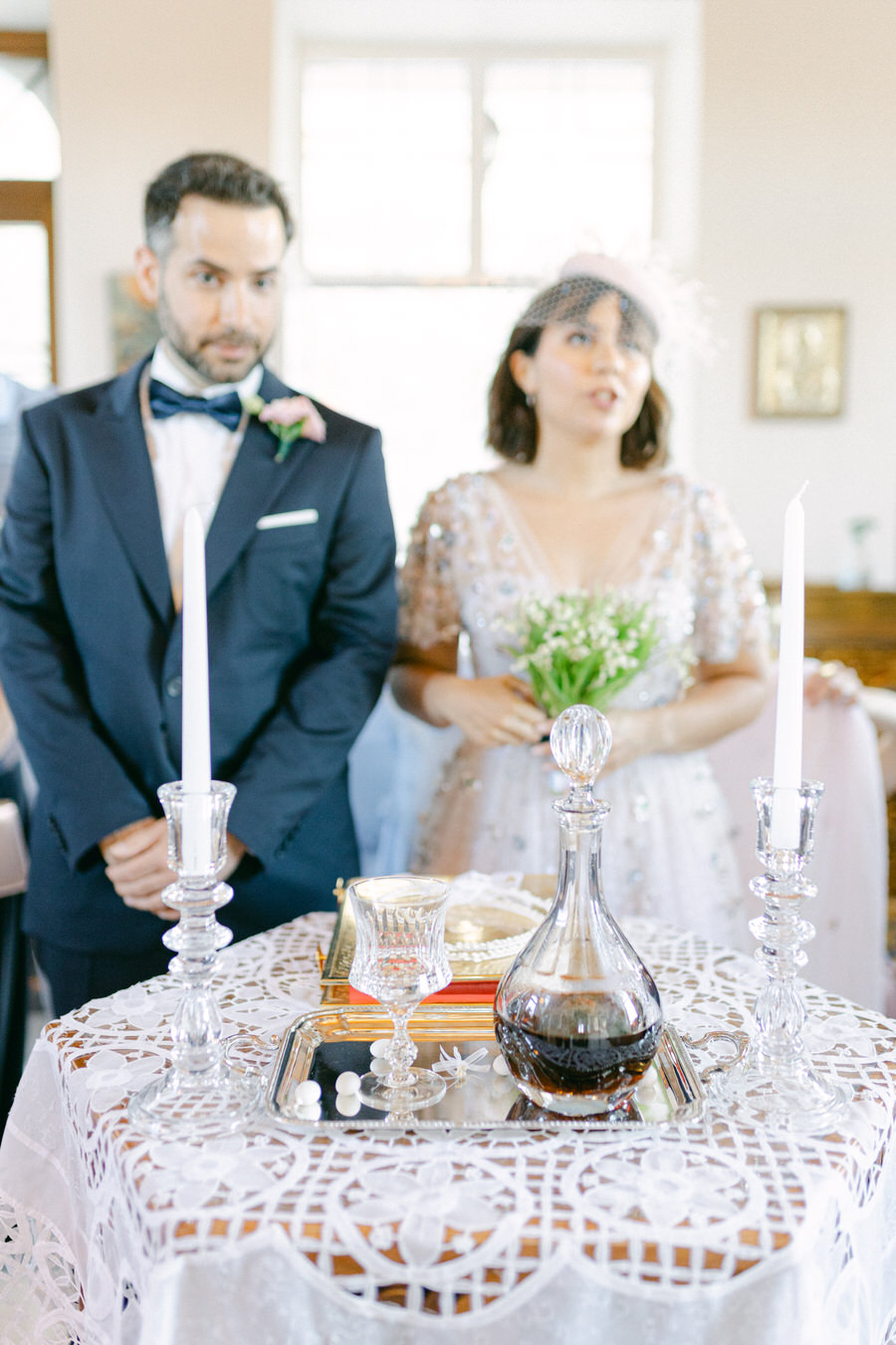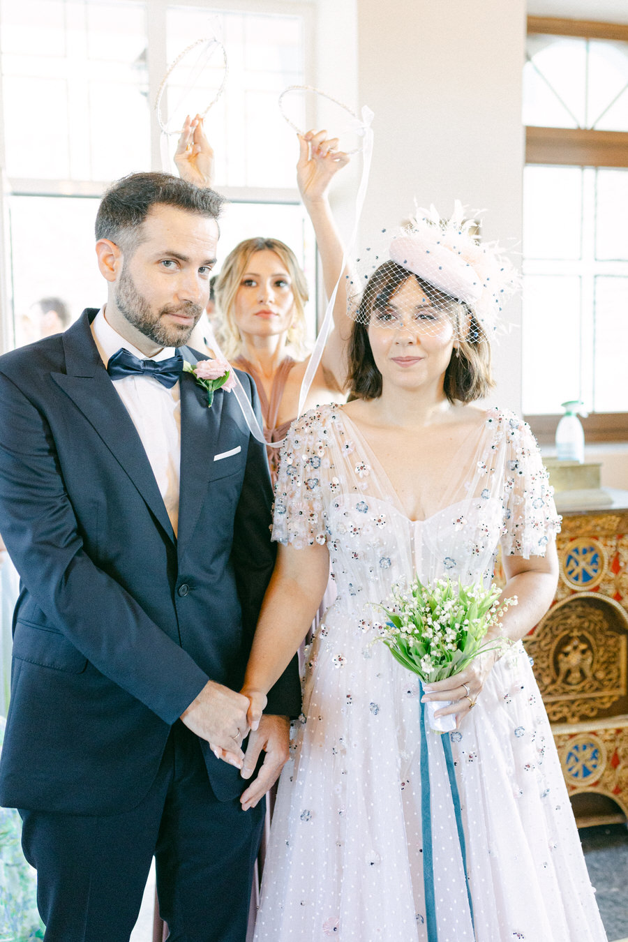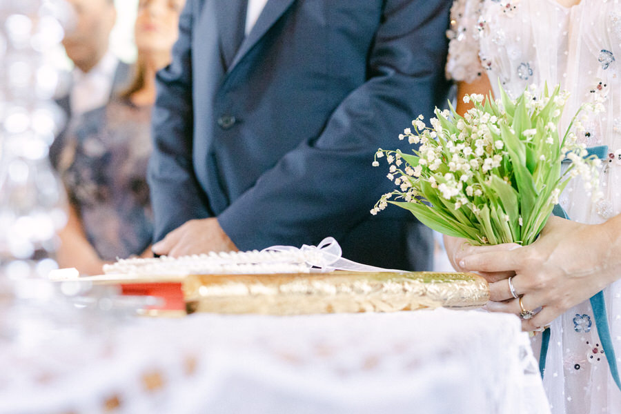 Η τελετή στην Αγία Παρασκευή Βόντελα, στη Μύρινα, ήταν μαγική. Η αγάπη στον αέρα ήταν αισθητή καθώς το ζευγάρι στεκόταν μπροστά στους πιο στενούς φίλους και την οικογένειά του. Η Θάλεια έλαμπε μέσα στο μεγαλοπρεπές δαντελένιο φλοράλ νυφικό της, με το χαμόγελό της να αντανακλά τη χαρά της στιγμής. Στεκόμενος ψηλά και περήφανος, ο Γιάννης δεν μπορούσε να πάρει τα μάτια του από τη νύφη του.