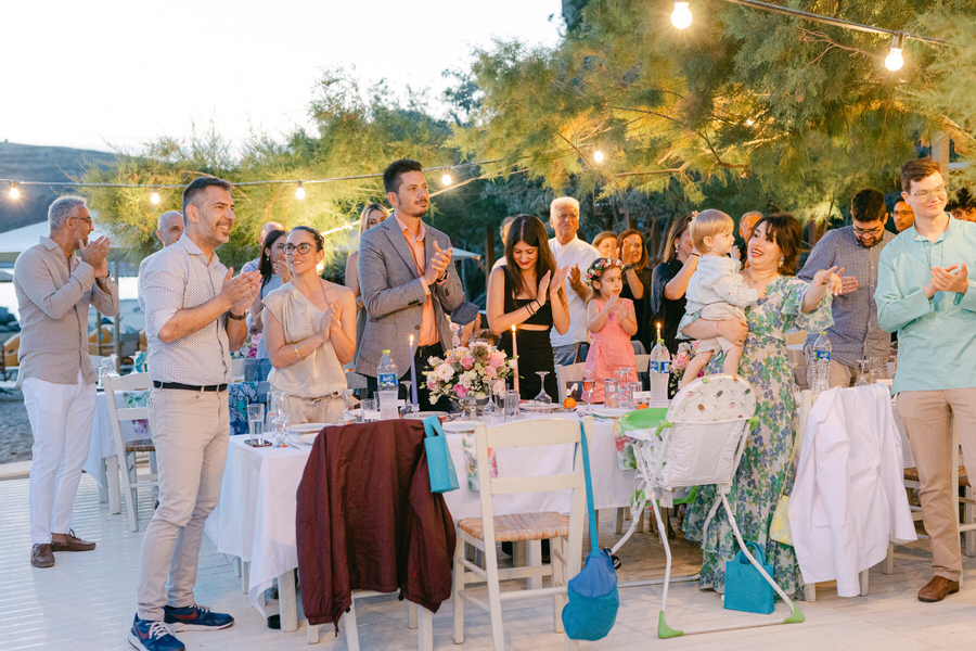 Μετά την τελετή, ο εορτασμός συνεχίστηκε μέχρι αργά το βράδυ και τα κύματα ευτυχίας και χαράς ανέβασαν τους πάντες στον ουρανό και ψηλά! Η ατμόσφαιρα ήταν σκέτη χαρά, με τα γέλια και τη μουσική να γεμίζουν τον αέρα. Οι παραδοσιακοί ελληνικοί χοροί ξεσήκωσαν τους πάντες και ο πρώτος χορός του ζευγαριού κάτω από τα λαμπερά φώτα ήταν μια στιγμή που δεν θα ξεχάσω ποτέ.