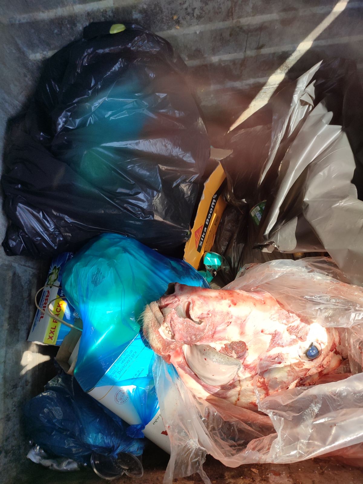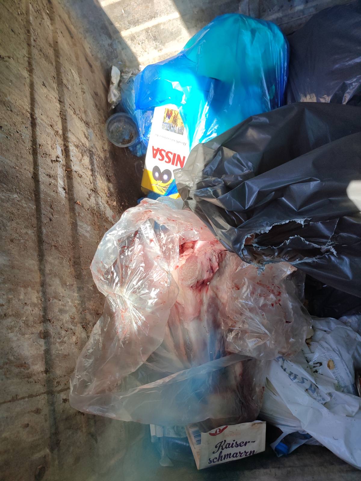 Επανειλημμένα και περισσότερο τώρα το καλοκαίρι, σε μεγάλη συχνότητα, κάθε φορά και σε άλλο κάδο απορριμάτων και συχνότερα σε αυτόν που βρίσκεται στον δρομο της εκκλησίας, υπάρχουν κόκαλα και χαλασμένα κρέατα με αίματα που τρέχουν στους δρόμους.