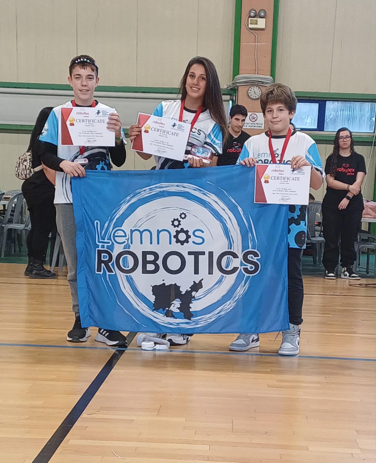 Συγκεκριμένα, στην κατηγορία -14 ετών, οι Lemnos Robotics Leaders (Λουκάς Τριανταφύλλου, Όλια Σφακιανάκη, Παναγιώτης Μαχαιρούδης), κατέκτησαν την 1η θέση στο Followline και τη 2η θέση στο Sumo 1Kg.