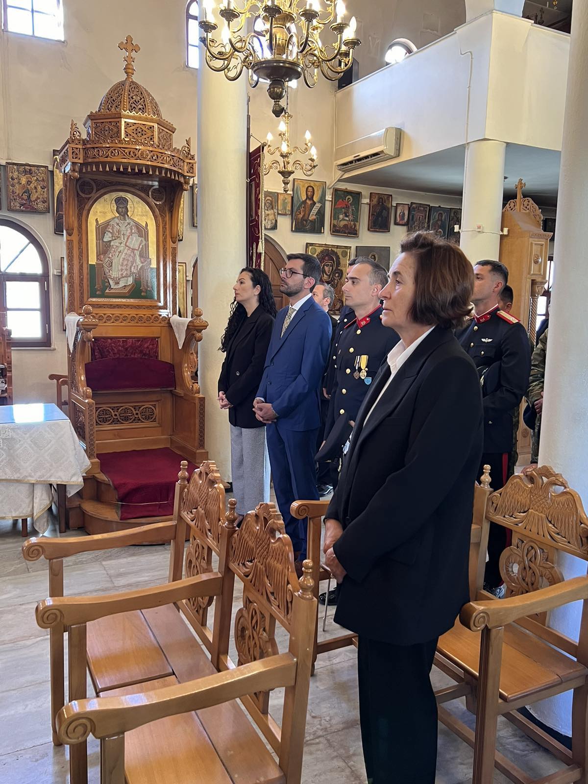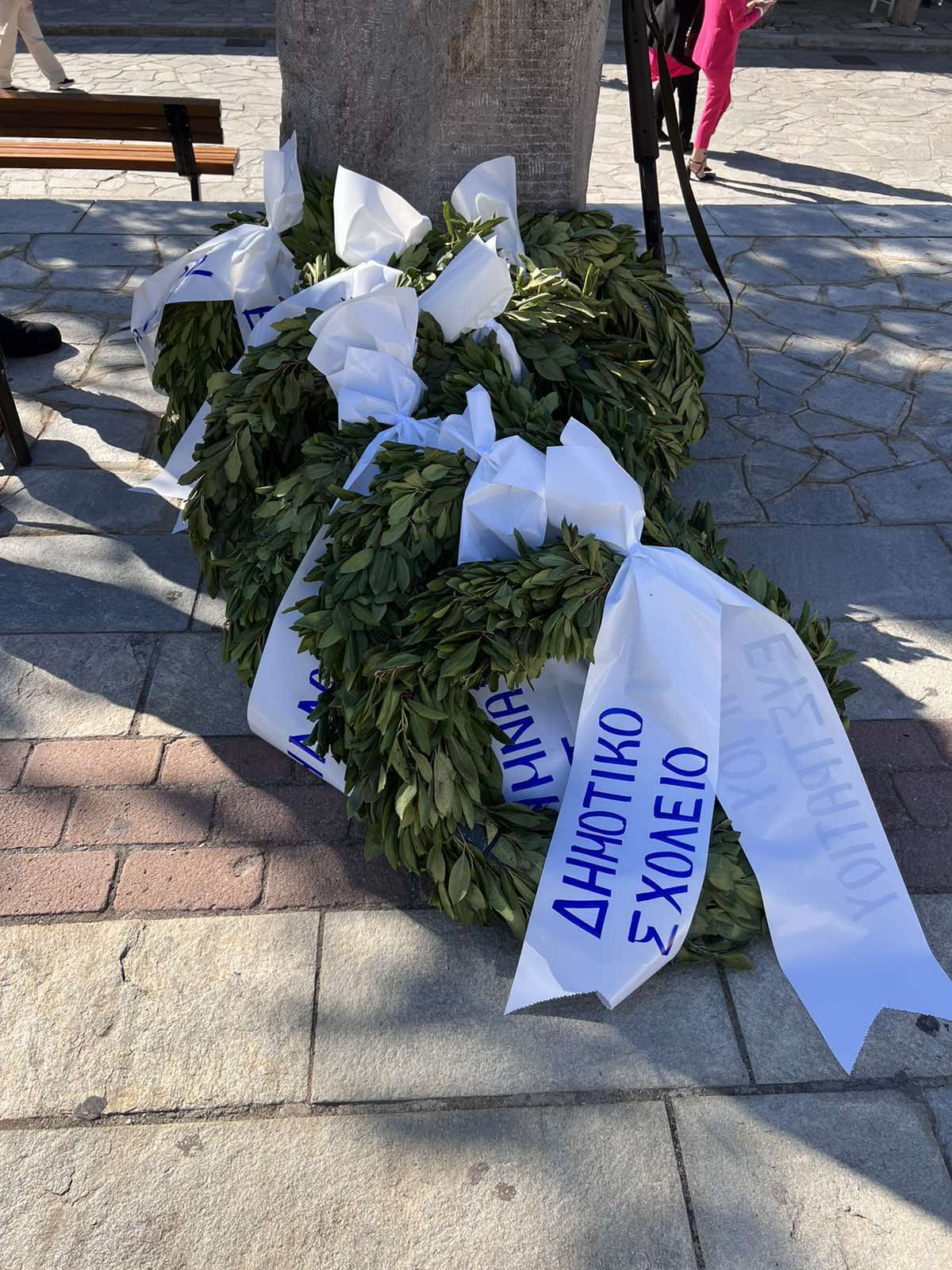 Αμέσως μετά τελέστηκε επιμνημόσυνη δέηση στο μνημείο Ηρώων και η κατάθεση στεφάνων από τους κ.κ: Δήμαρχο Αγίου Ευστρατίου Κωνσταντίνο Σινάνη, Διοικητή της ΔΑΝ Αγίου Ευστρατίου Ταγματάρχης Ευάγγελο Φιτσιάλη, Αντιδήμαρχο Αγίου Ευστρατίου Αντιγόνη Σιδηροπούλου, Διοικητή Α.Τ Αγίου Ευστρατίου Δημήτριο Χατζητεκελή, Λιμενοσταθμάρχη του Λ.Σ Αγίου Ευστρατίου ανθυπασπιστή Χαράλαμπο Τσεχελίδη, Επίτιμο Αντιπρόεδρο του Συλλόγου των Απανταχού Αγιοευστρατιτών Χρήστο Μάκο και από μαθητές Δημοτικού, Γυμνασίου Λ.Τ. Αγίου Ευστρατίου.