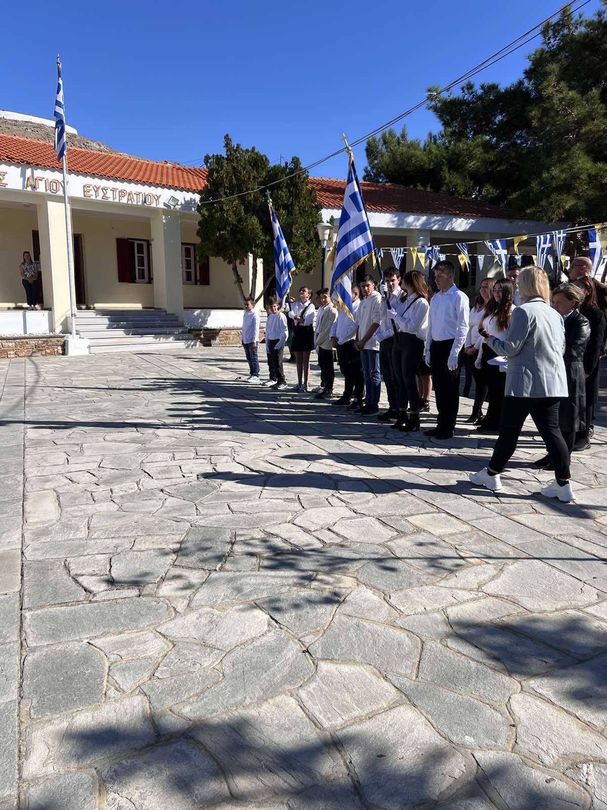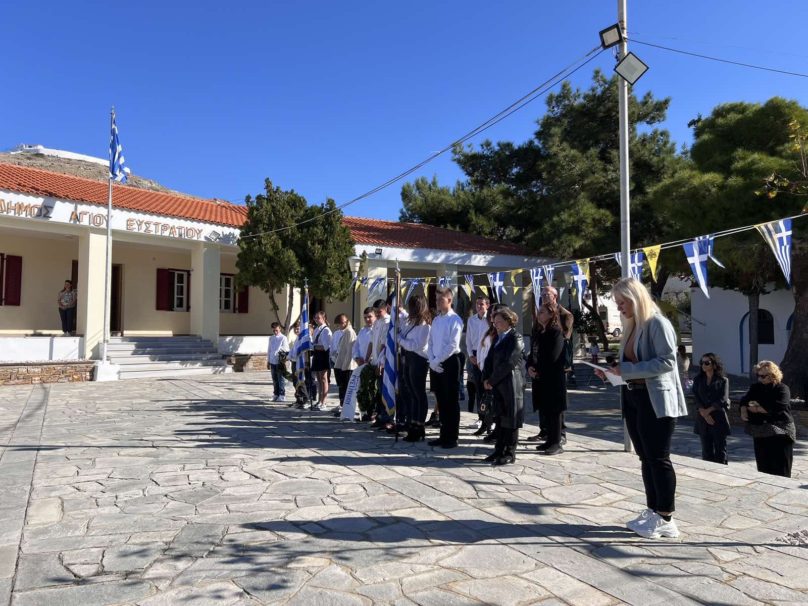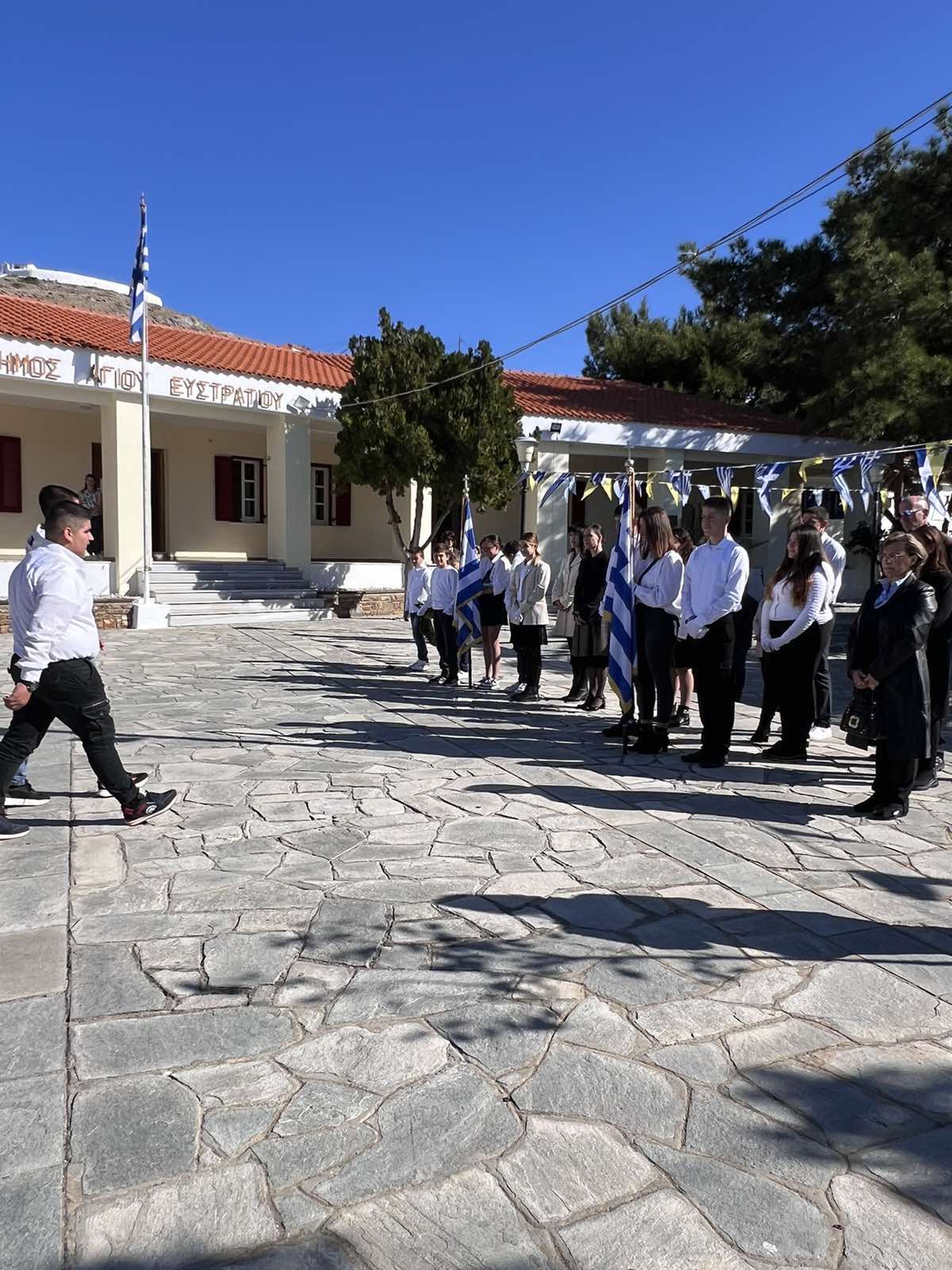 Ο εορτασμός της Εθνικής επετείου κορυφώθηκε με την μαθητική παρέλαση των σχολείων Πρωτοβάθμιας και Δευτεροβάθμιας Εκπαίδευσης του Αγίου Ευστρατίου.