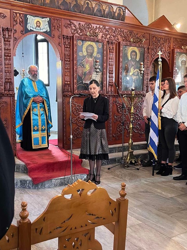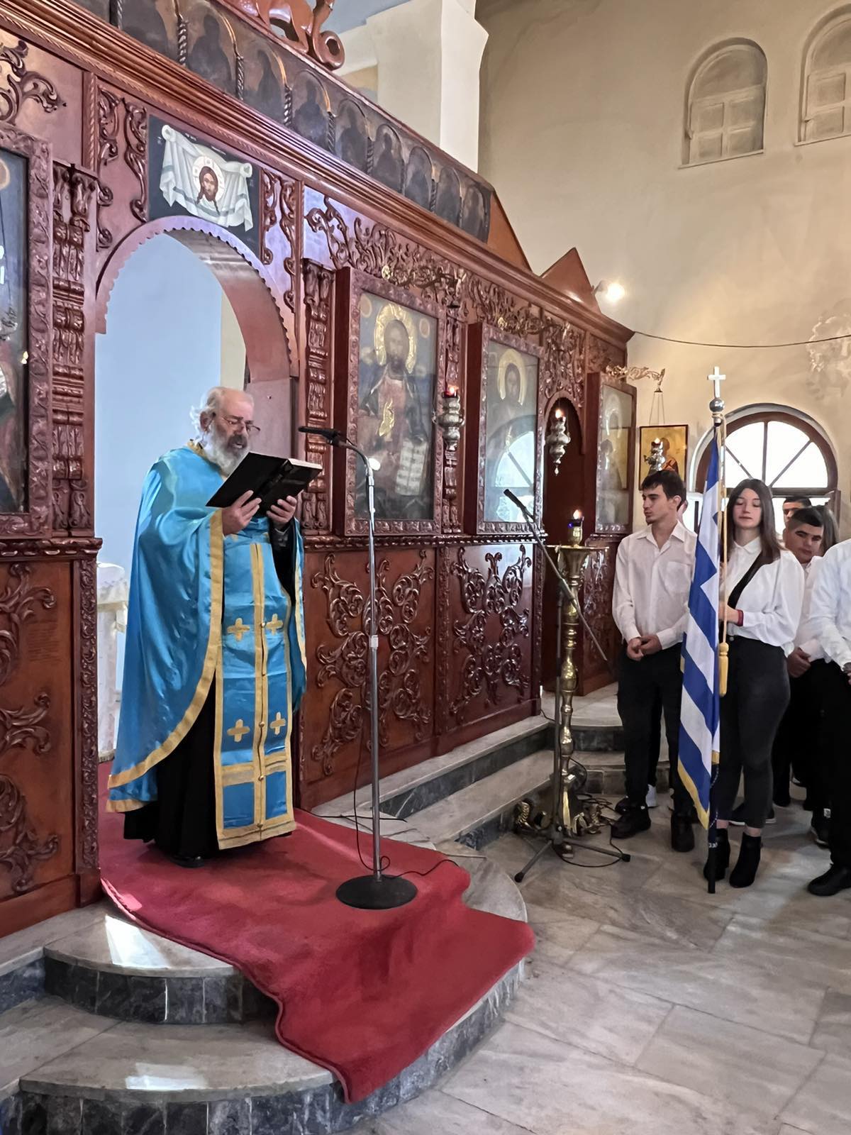 Το εορταστικό πρόγραμμα ξεκίνησε με την Επίσημη Δοξολογία στον Ι.Ν Γεννήσεως του Χριστού από τον Ιερέα Ιωάννη Γκέκα και την εκφώνηση του Πανηγυρικού της ημέρας από την προϊσταμένη του Δημοτικού Σχολείου Αγίου Ευστρατίου κ. Σοφία Κεχαγιά.