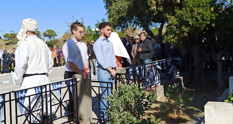 Ο Αντιπρόεδρος και ένα Μέλος του Φοιτητικού Συλλόγου, μετά την επιμνημόσυνη δέηση στο χώρο του Ηρώου Πεσόντων, εκ μέρους του Τμήματος και του Πανεπιστημίου Αιγαίου, παρουσία πλήθους κόσμου, πολιτικών και ένστολων αρχών του τόπου, κατέθεσαν στεφάνι, δηλώνοντας έτσι την παρουσία και το σεβασμό της πανεπιστημιακής κοινότητας στην εθνική μνήμη.