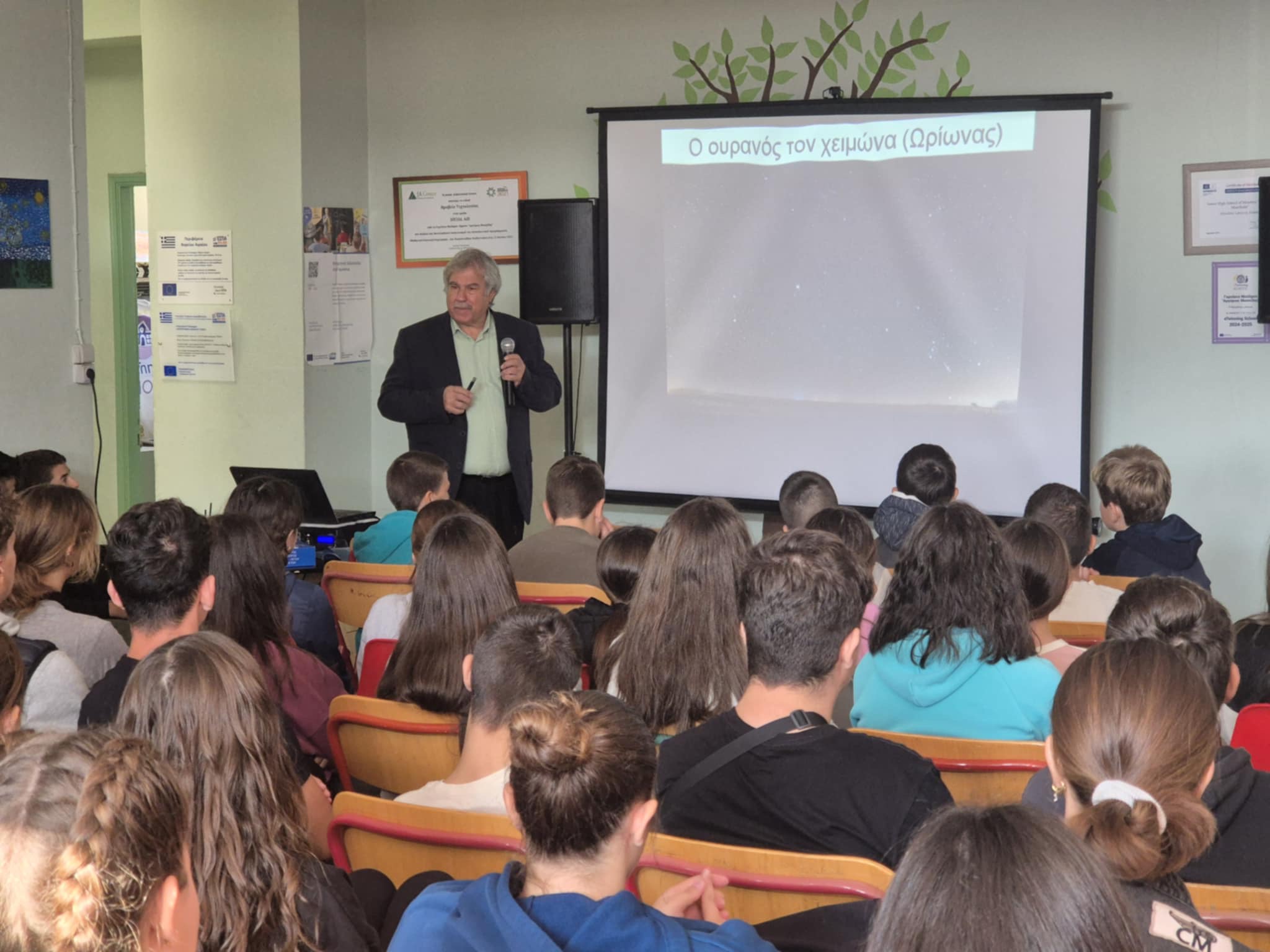 Η παρουσία του - στο πλαίσιο του διεθνούς δικτύου «Από τη Μυθολογία στο Διάστημα, Myth2Space» - ενέπνευσε και καθήλωσε μαθητές και εκπαιδευτικούς, καθώς ο καθηγητής με τη μοναδική ικανότητα αφήγησης που διαθέτει, κατάφερε να φέρει κάτι από το διάστημα πιο κοντά στους μαθητές, κάνοντάς το λίγο πιο κατανοητό.