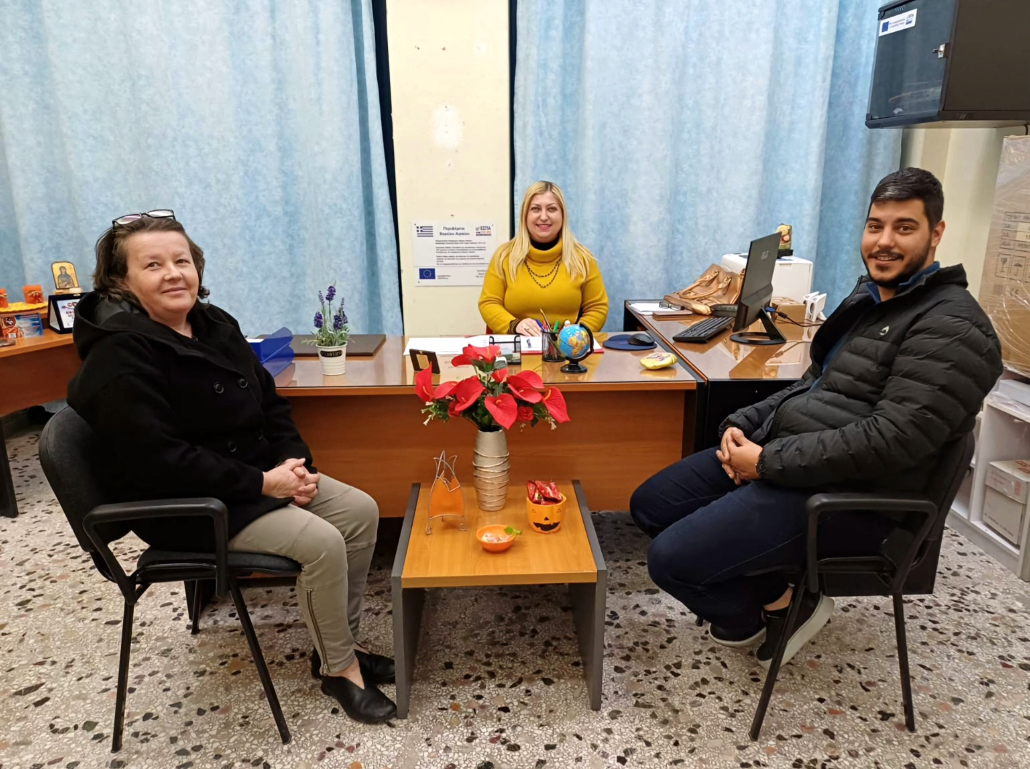 Η Διευθύντρια της ΣΑΕΚ κα Ιουλία Λυγδά, μαζί με το διοικητικό προσωπικό, τους σπουδαστές και εκπαιδευτές, τον υποδέχτηκε και τον καλωσόρισε εγκάρδια.